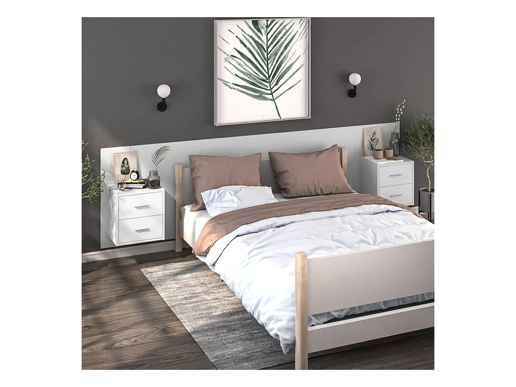 Comodino da parete in bianco lucido