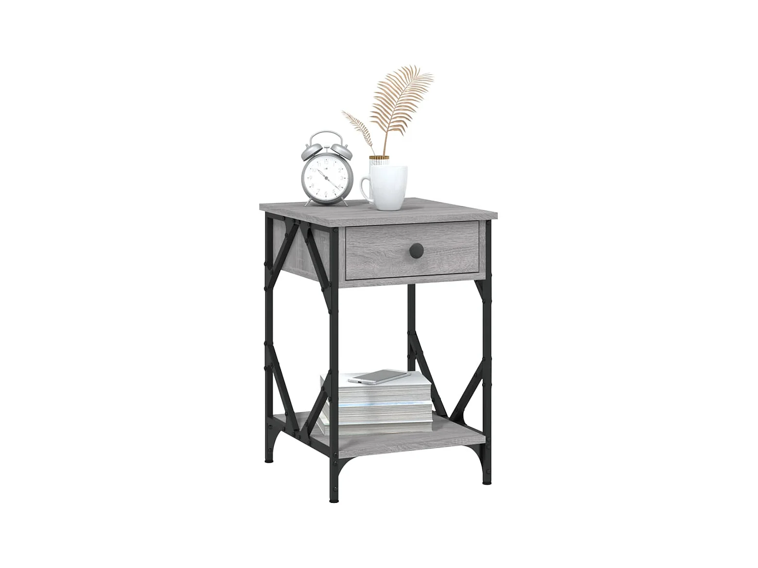 Comodino con Gambe in Metallo Grigio Sonoma 40x30x50 cm