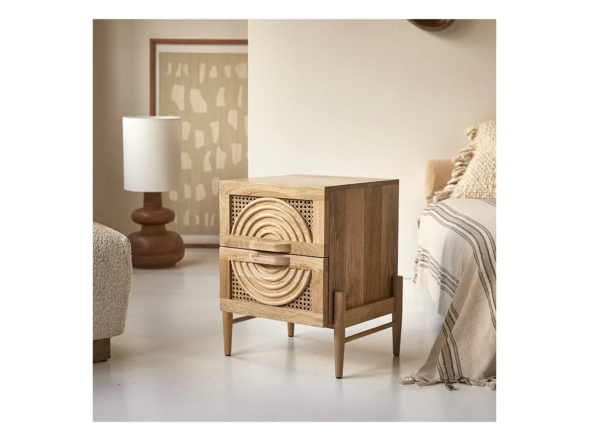 Comodino Arto a 2 cassetti in legno di rovere massello