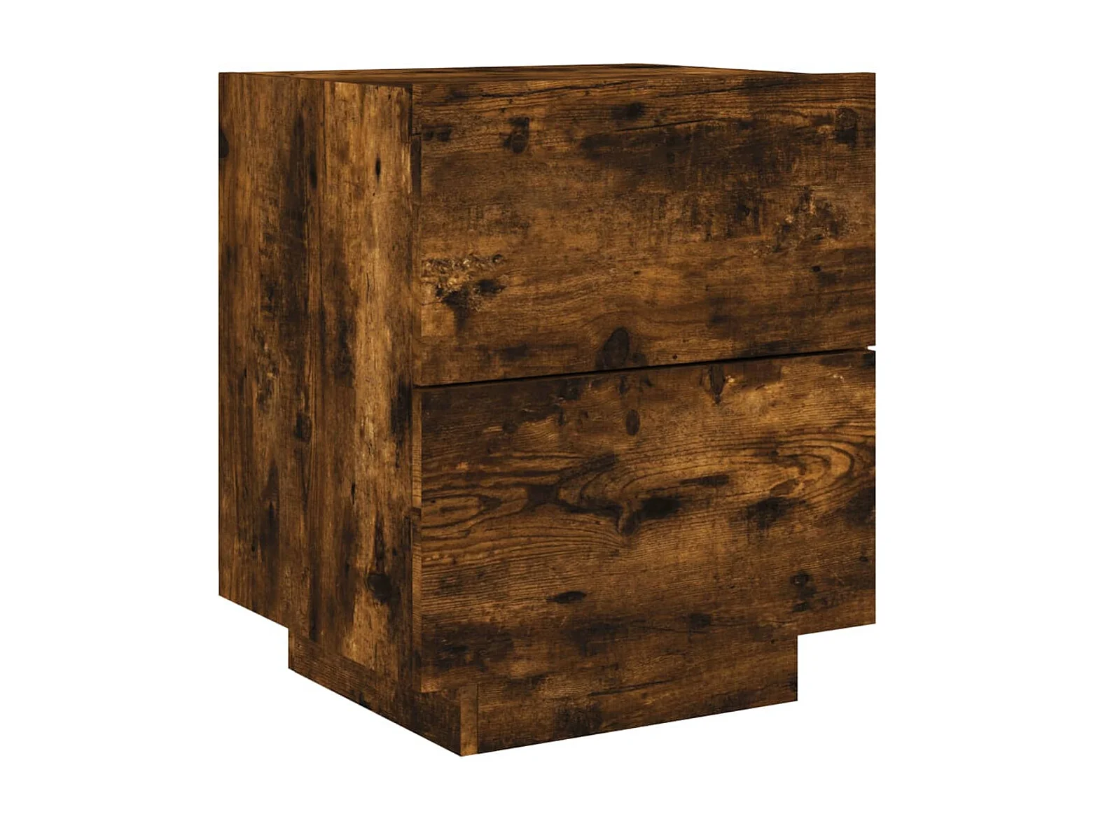 Comodino in legno ingegnerizzato di rovere affumicato e luci a LED
