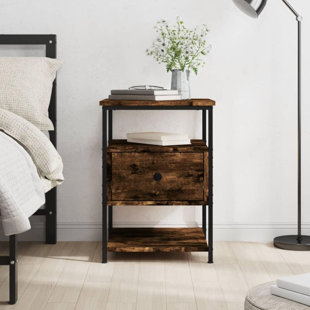 Comodino in rovere affumicato 40x42x55 cm in legno ingegnerizzato