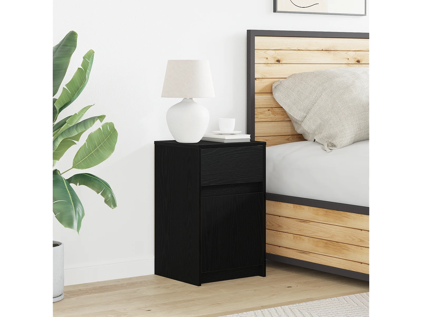 Comodino LED con cassetto Rovere nero 38 x 34 x 61 cm