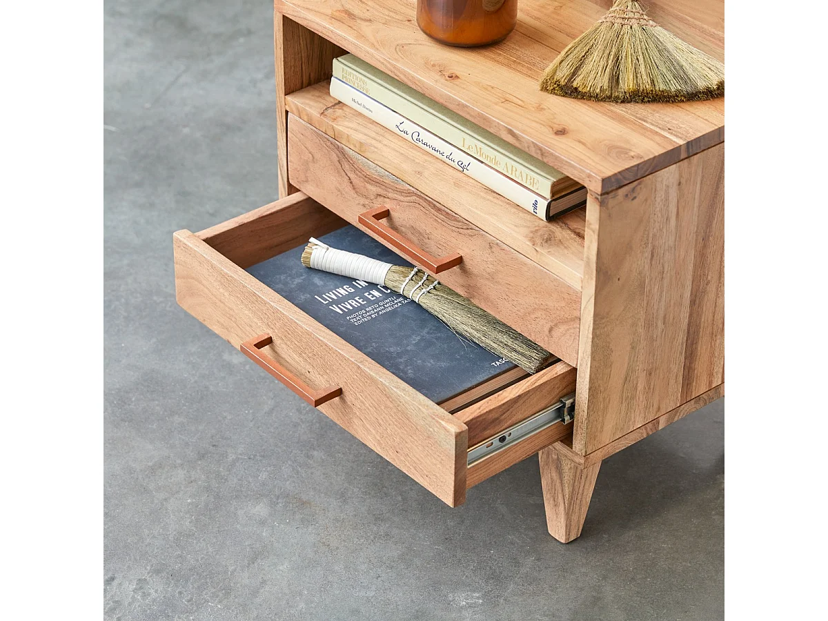 Comodino Arto a 2 cassetti in legno di rovere massello