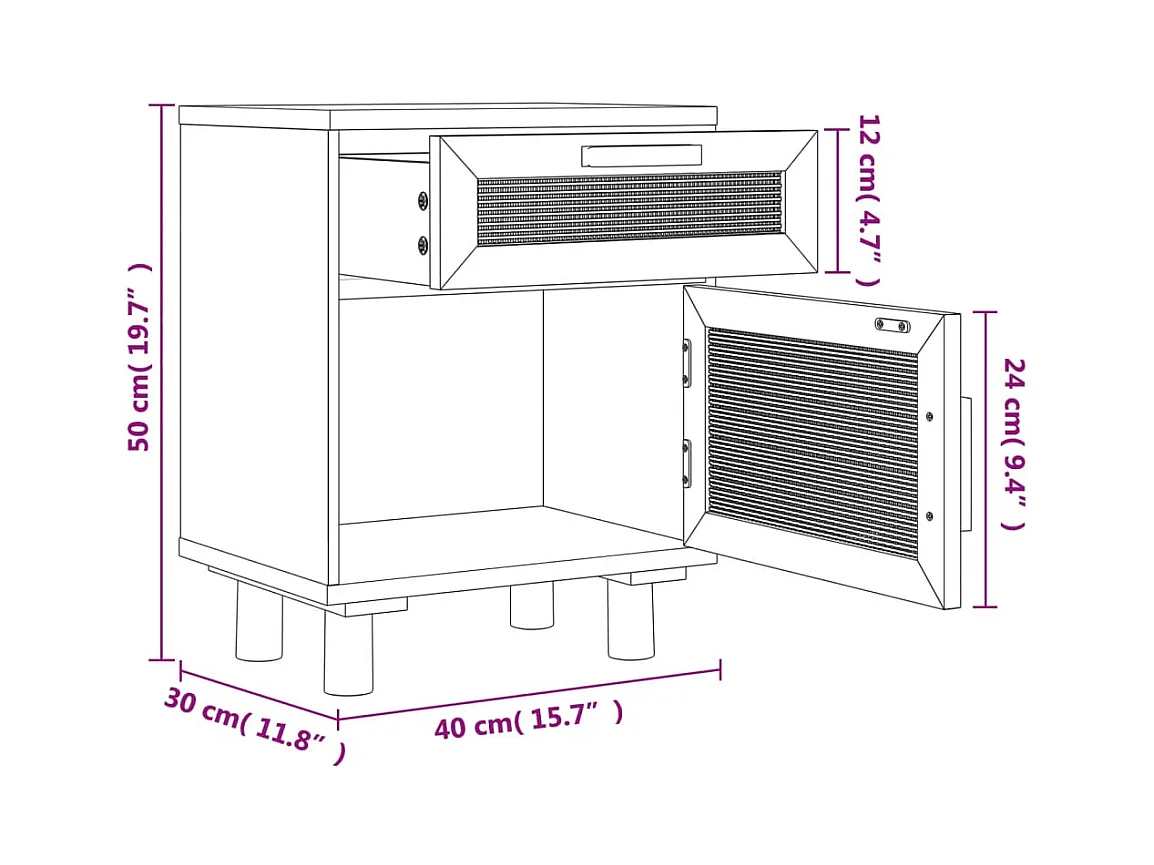 Comodino in legno vecchio 40x30x39 cm in legno ingegnerizzato