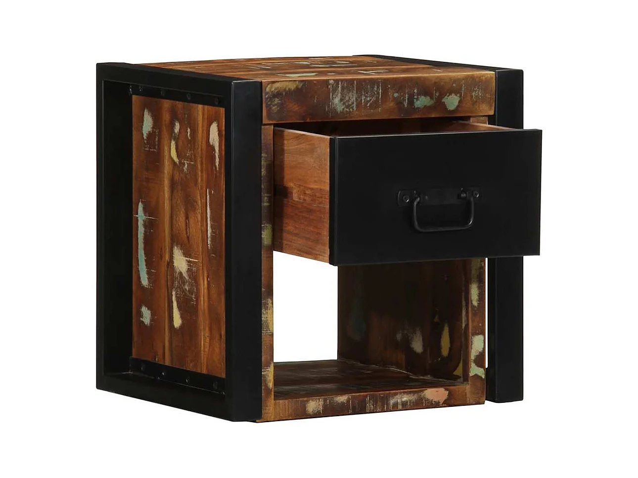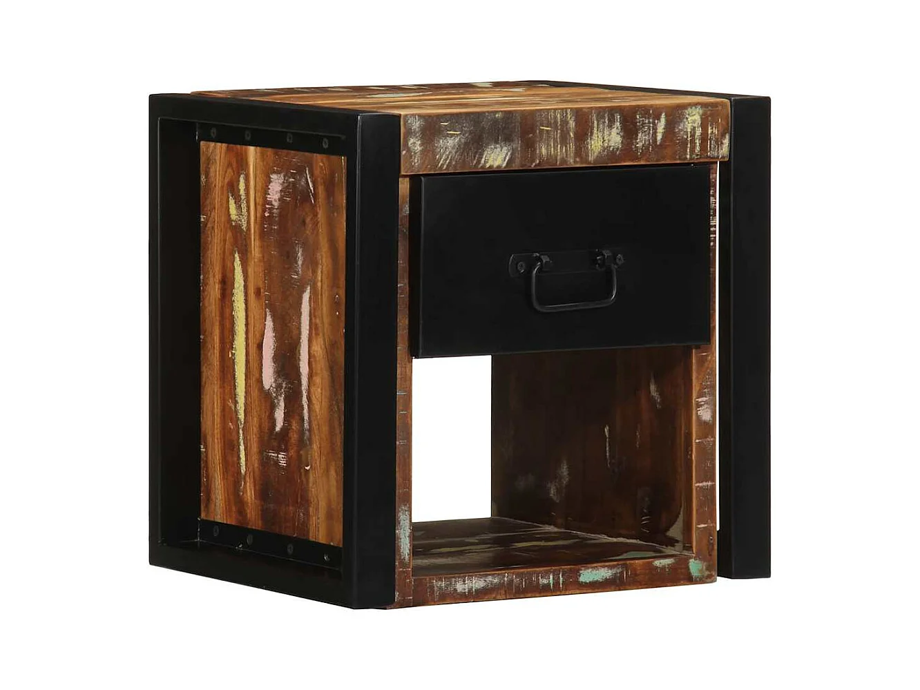 Comodino multicolore 40x35x40 cm in legno di recupero