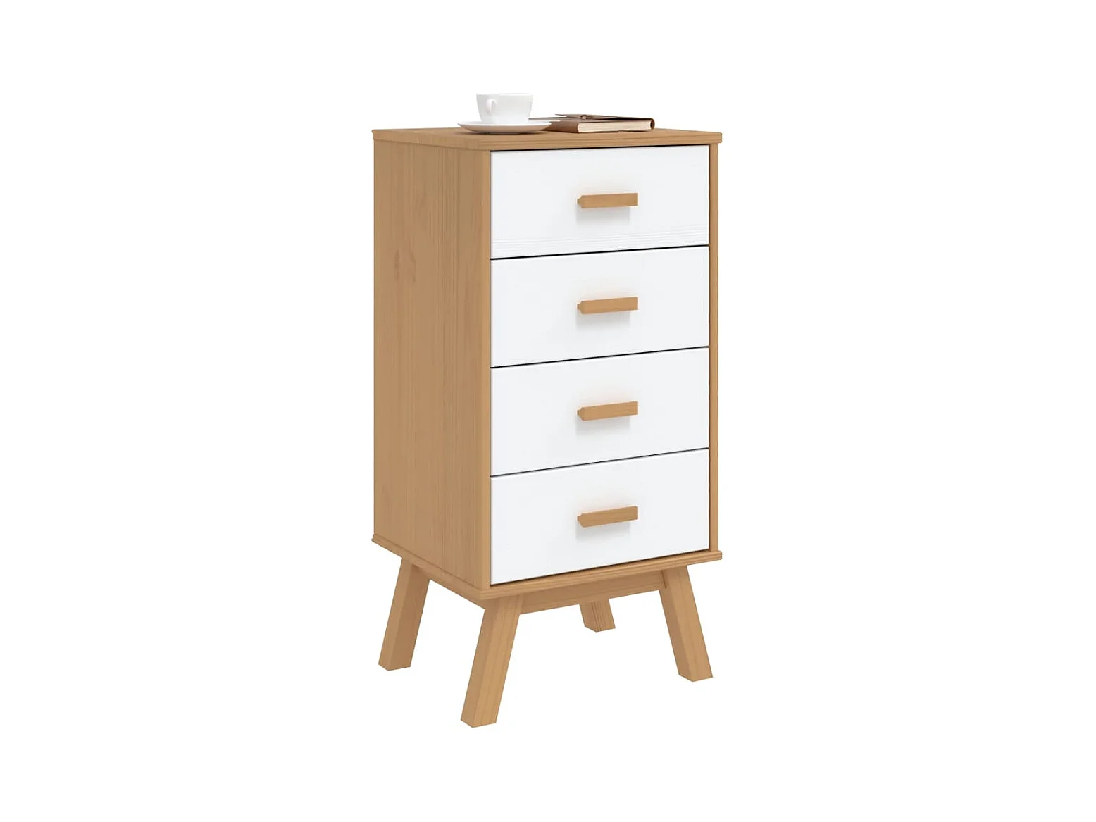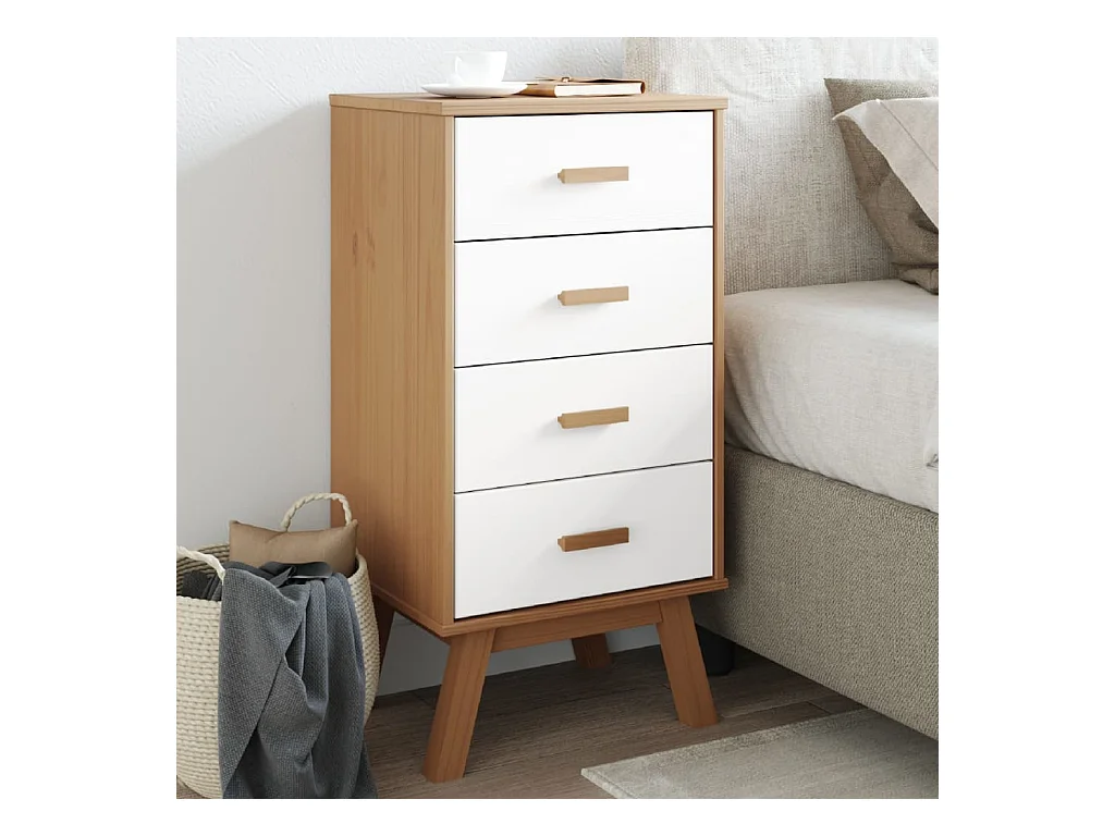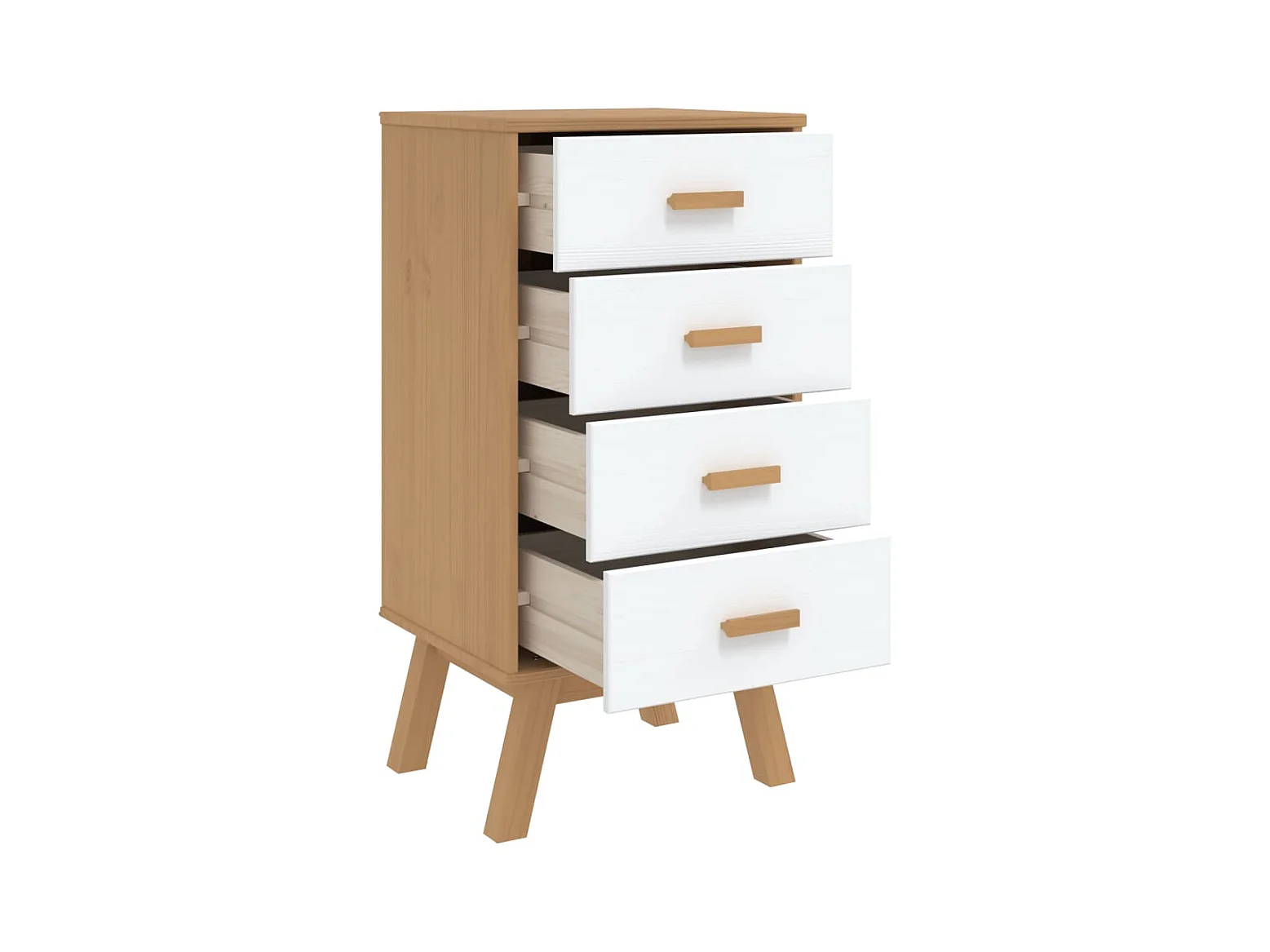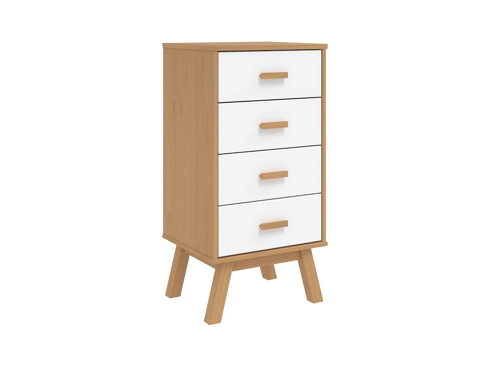 Comodino OLDEN Bianco e Marrone in Legno Massello di Pino