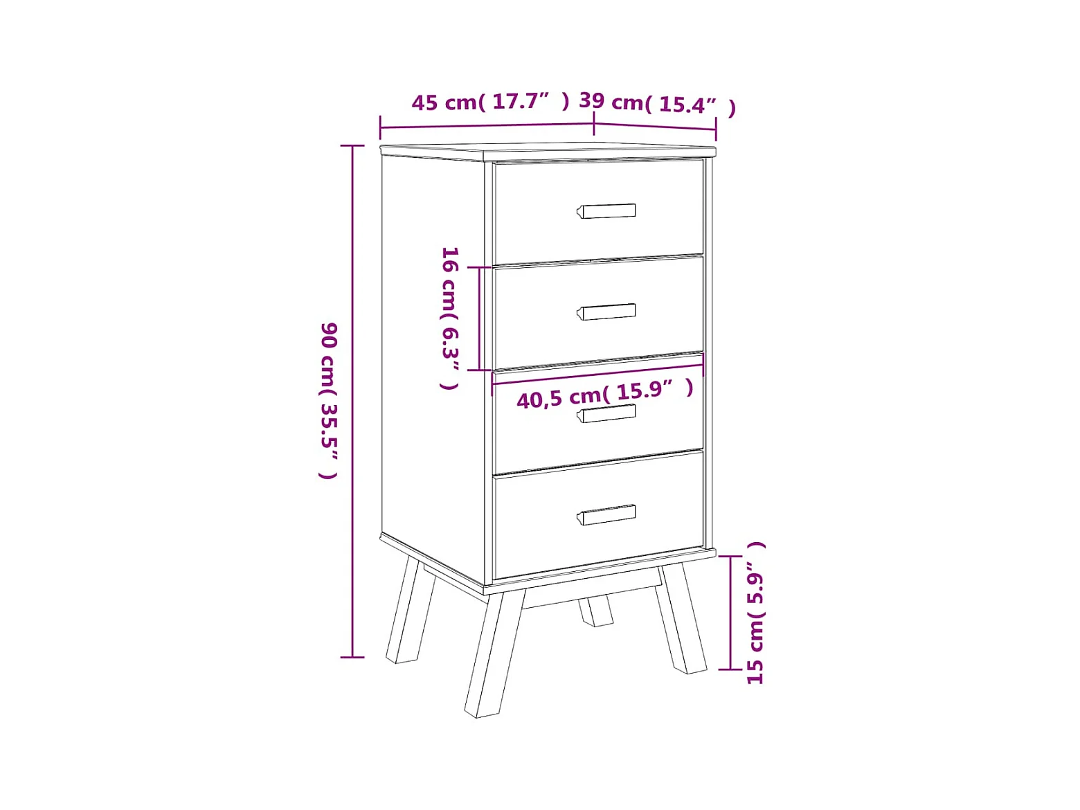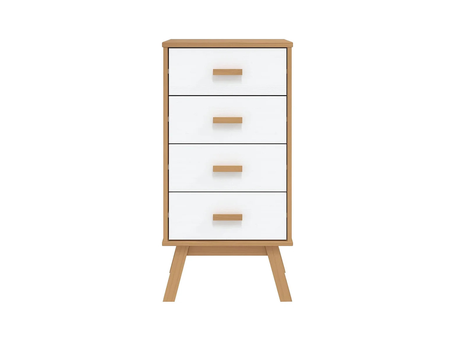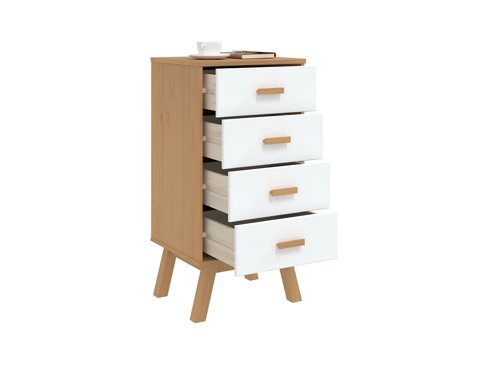 Comodino OLDEN Bianco e Marrone in Legno Massello di Pino