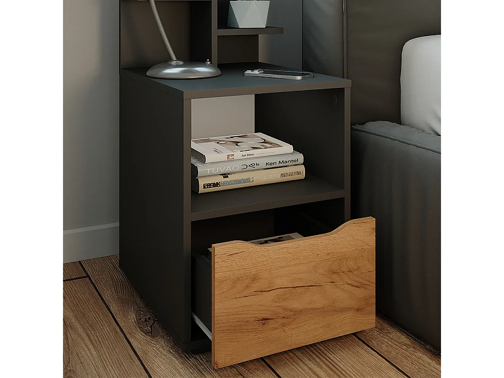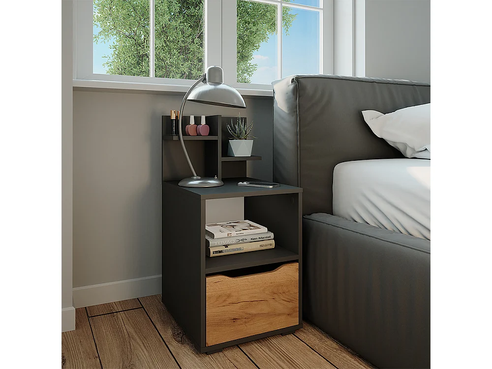 Comodino quercia dorata/antracite 66x36x60 eliza