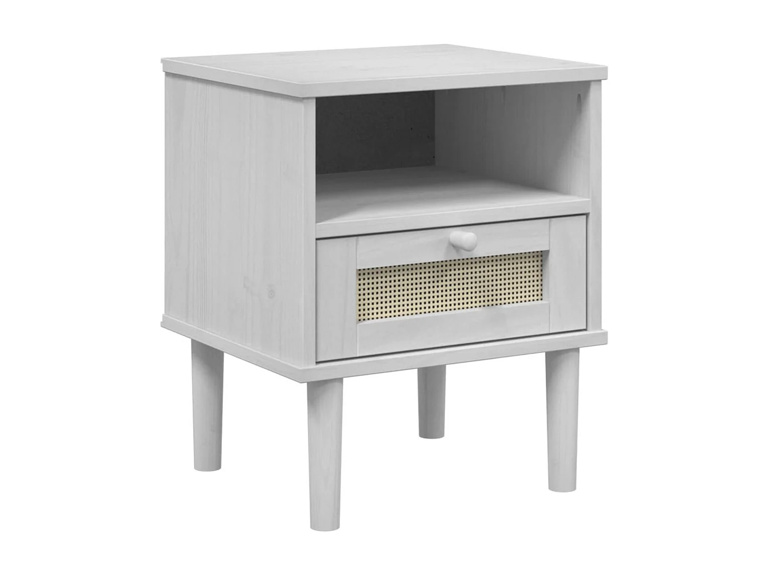 Comodino SENJA in effetto rattan bianco, legno massello di pino
