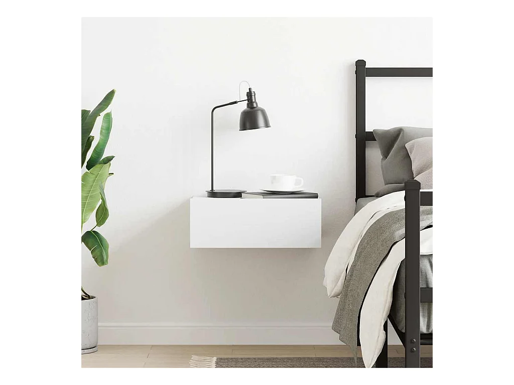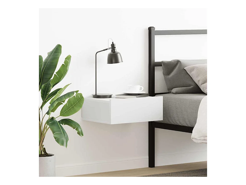 Comodino sospeso bianco 40x30x15 cm in legno ingegnerizzato