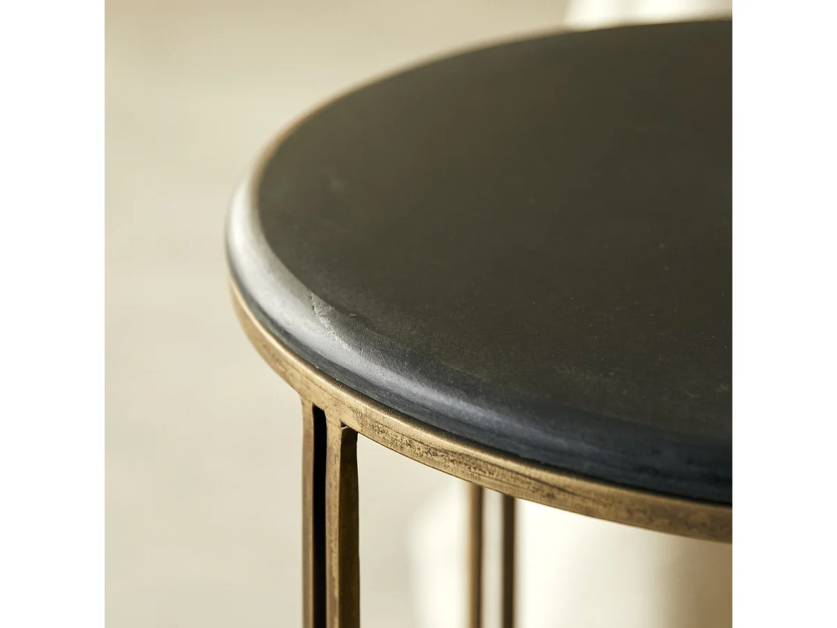 Comodino tondo in metallo e marmo Simëon