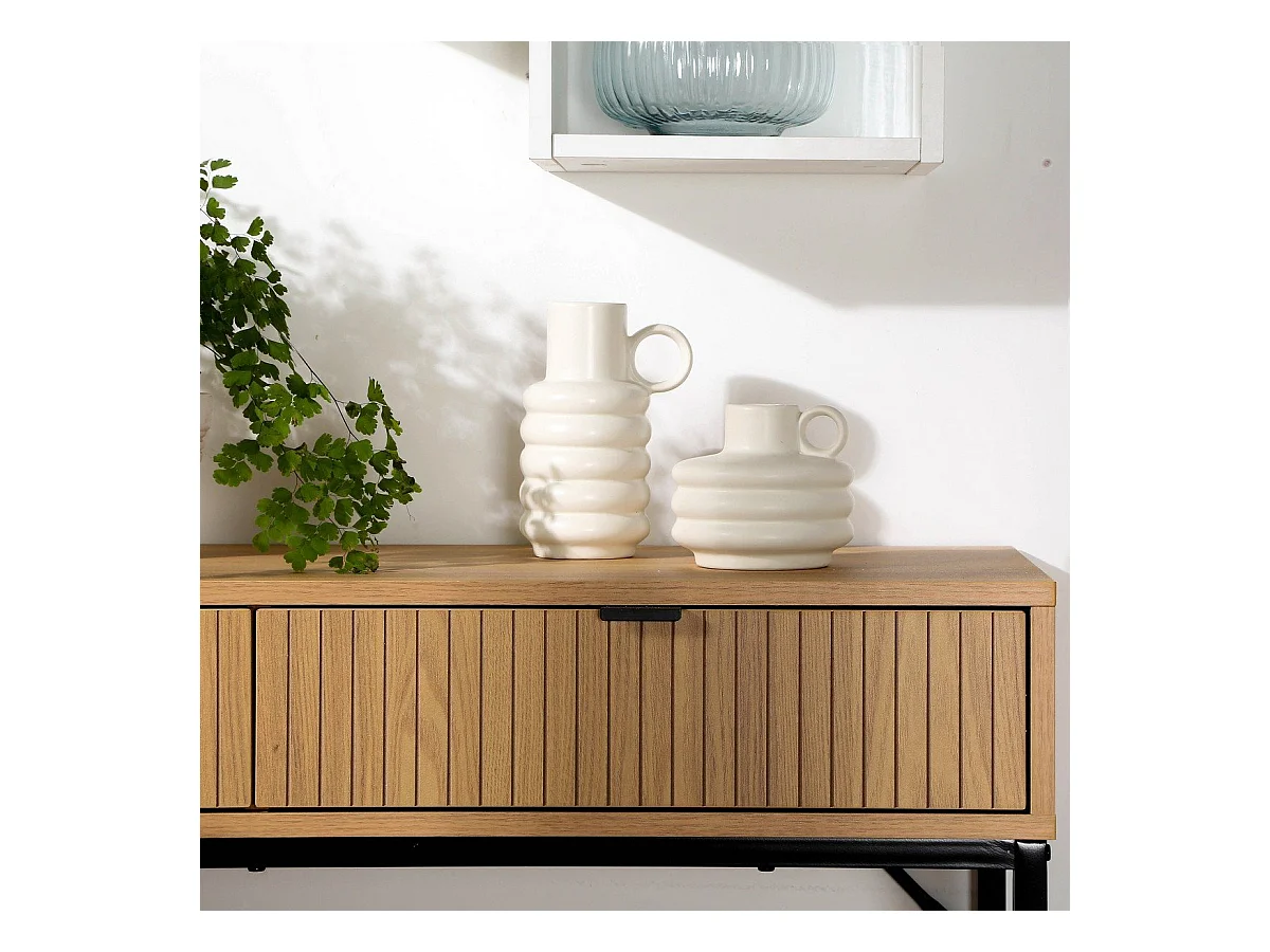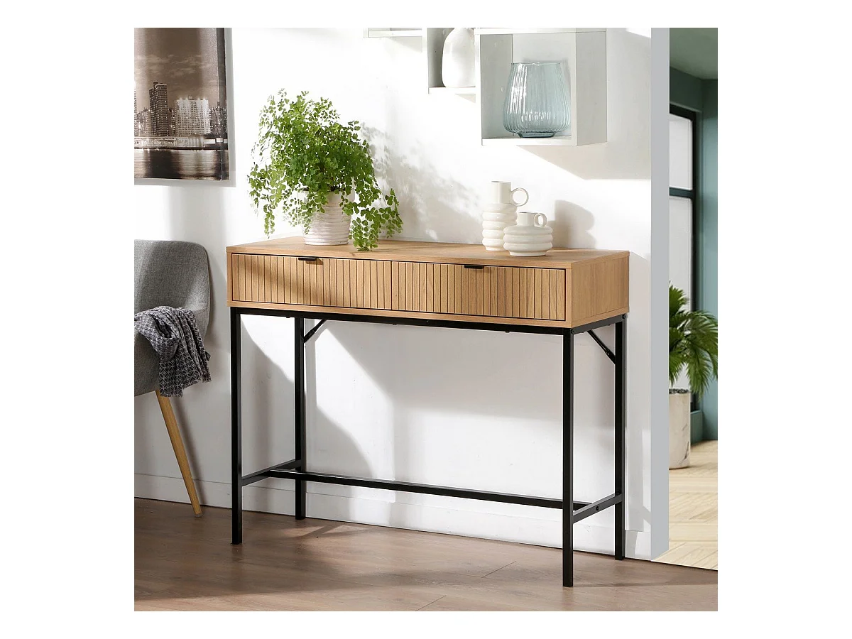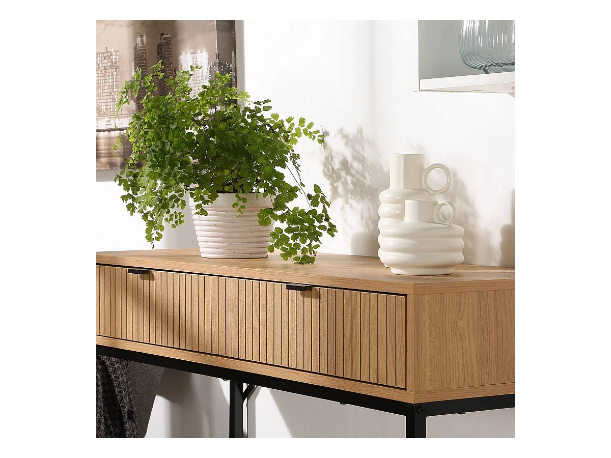Console 2 Cassetti Frontale Effetto Legno a Scanalature - L100 cm