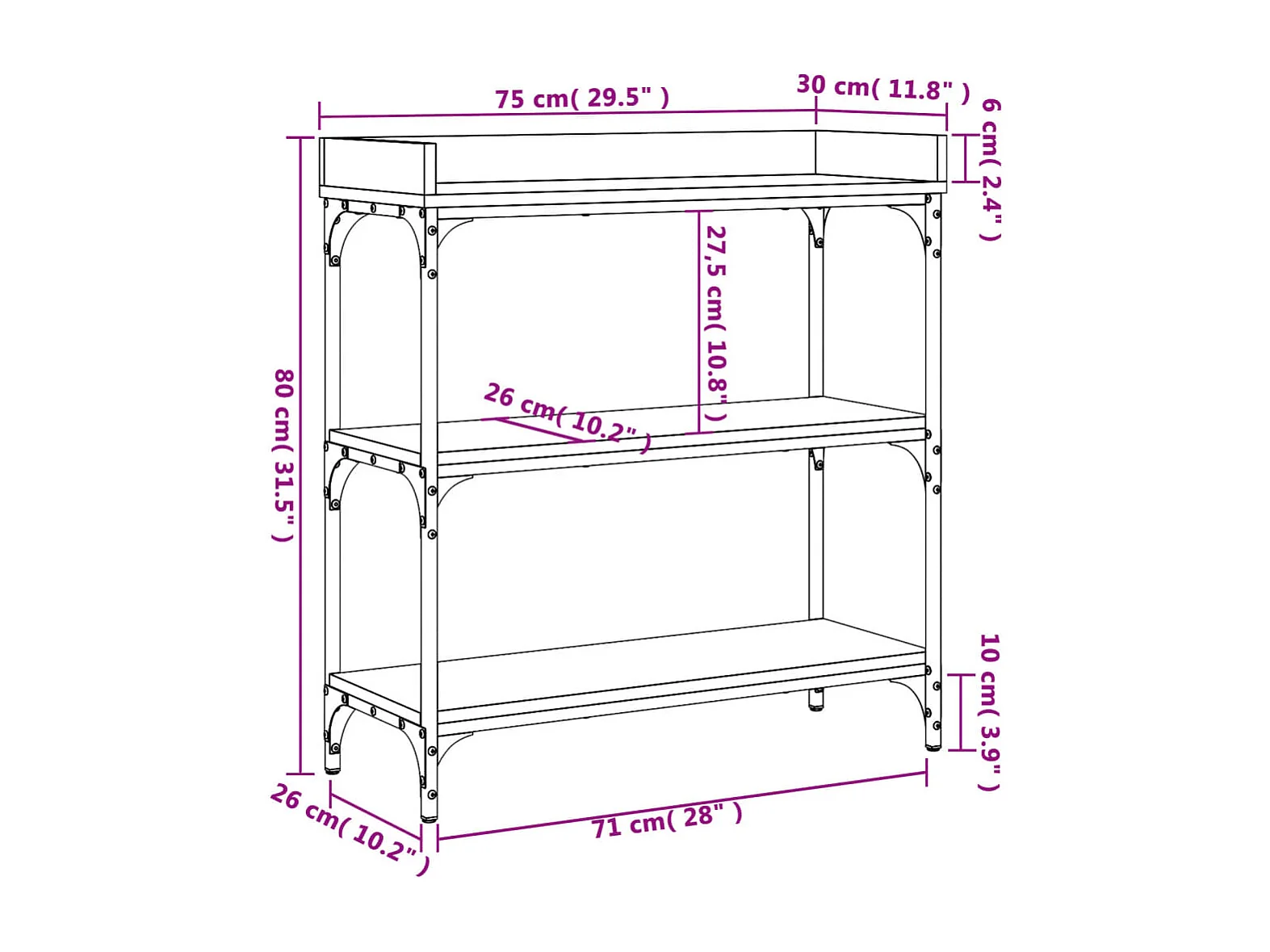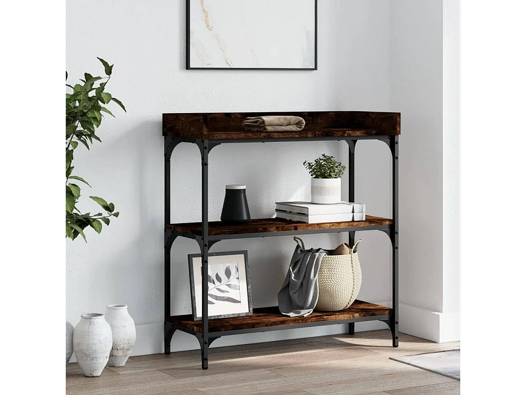Consolle con ripiani in rovere affumicato 75x30x80 cm