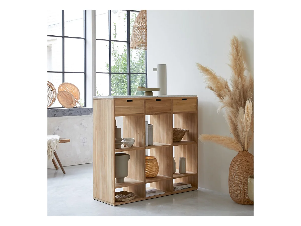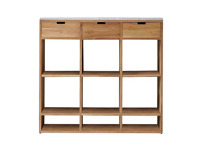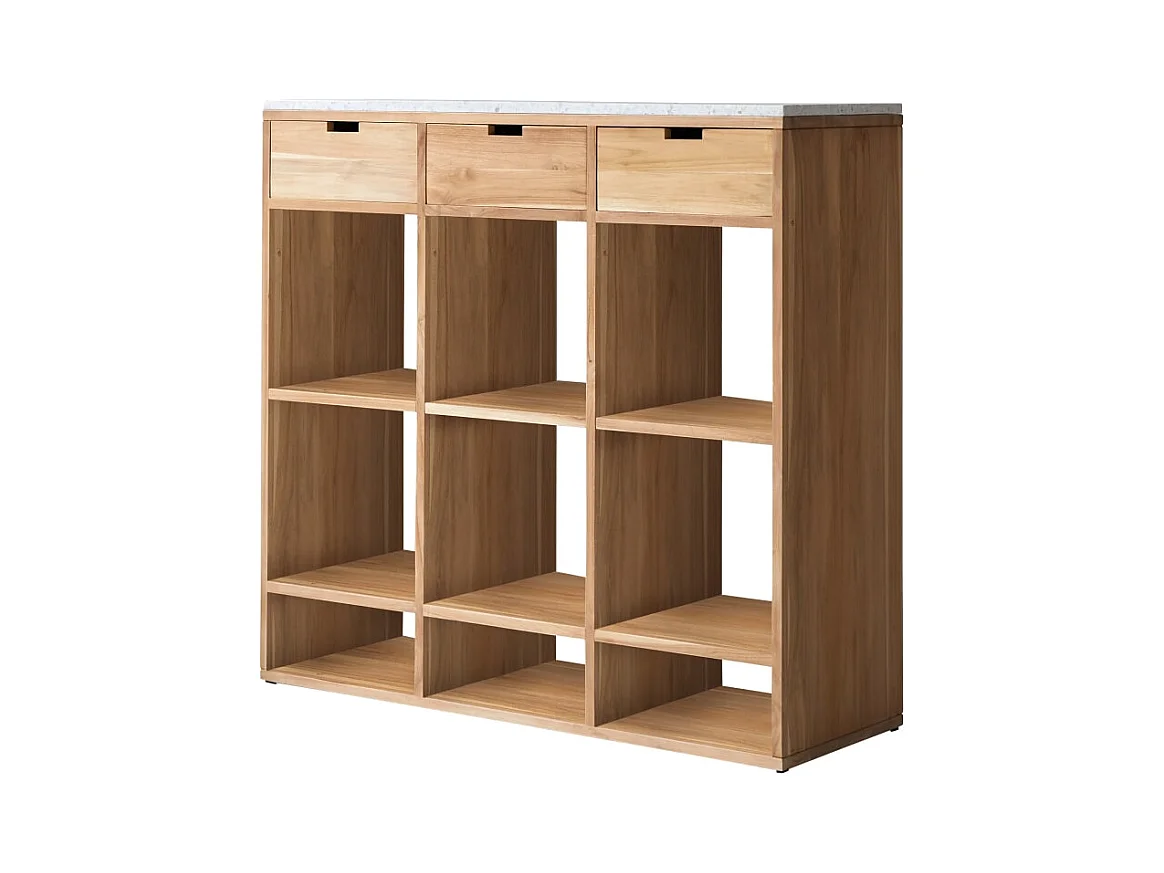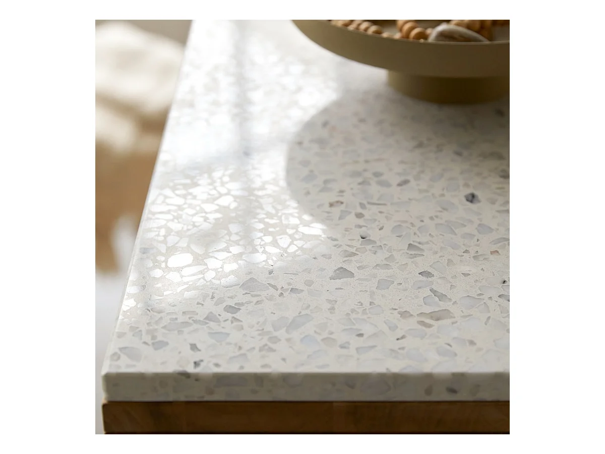 Consolle in legno di teak massello e terrazzo premium White Miho
