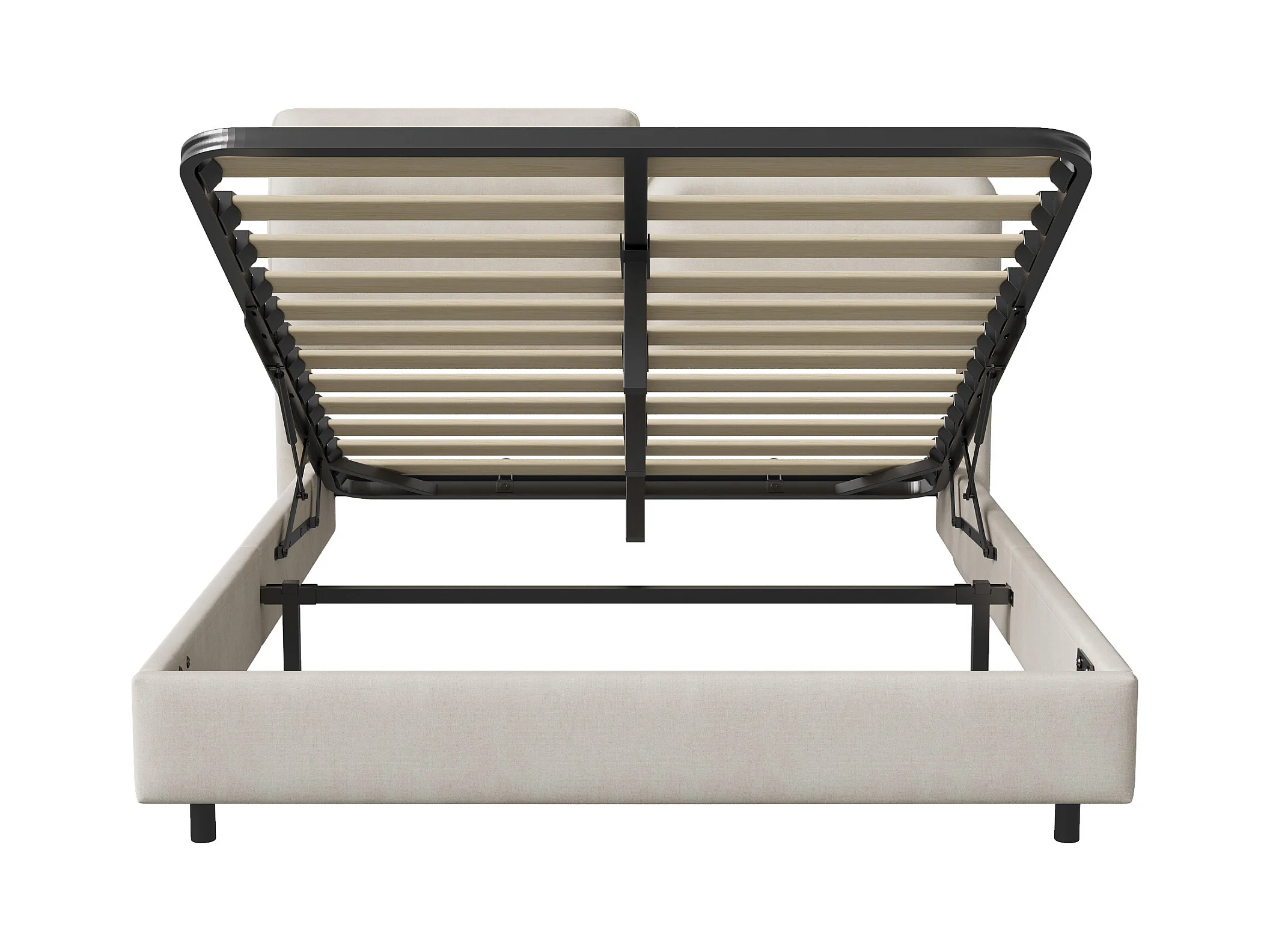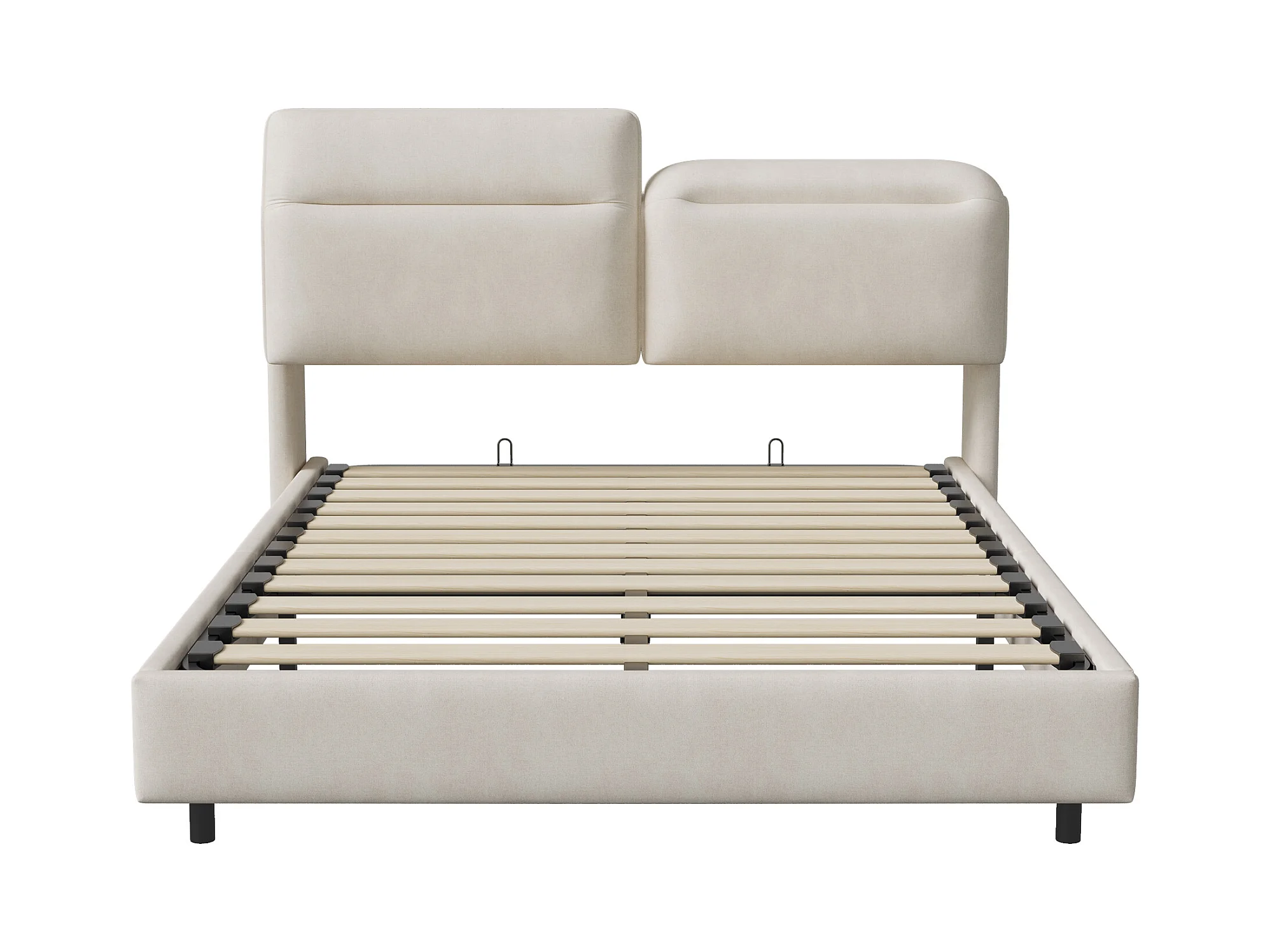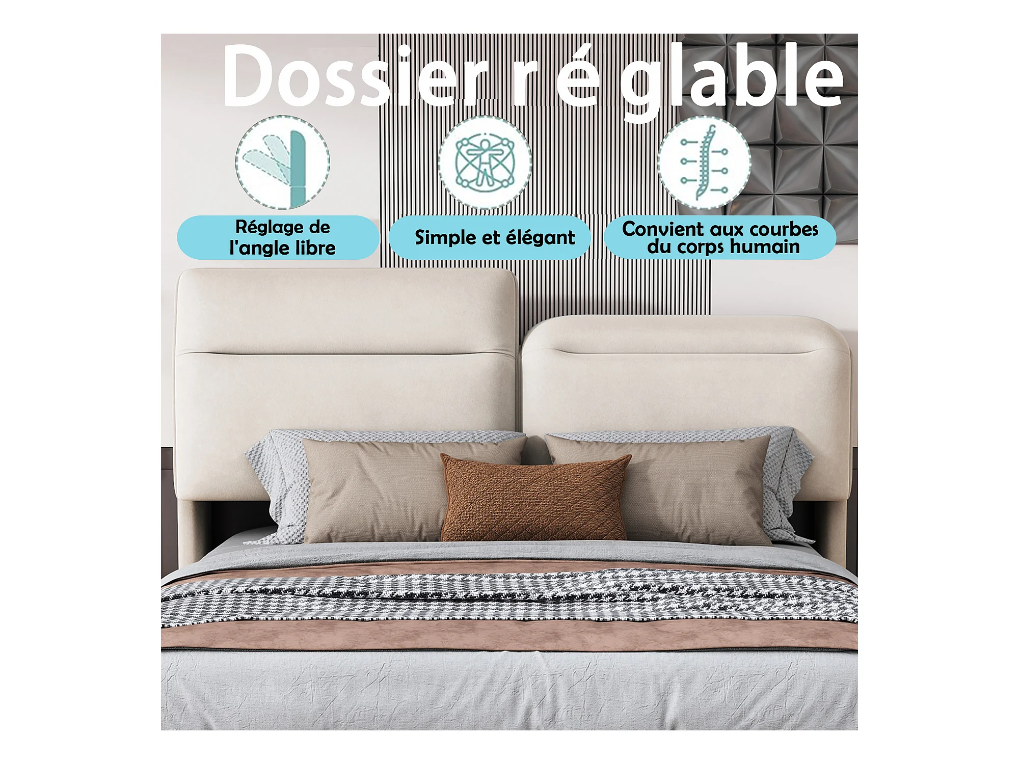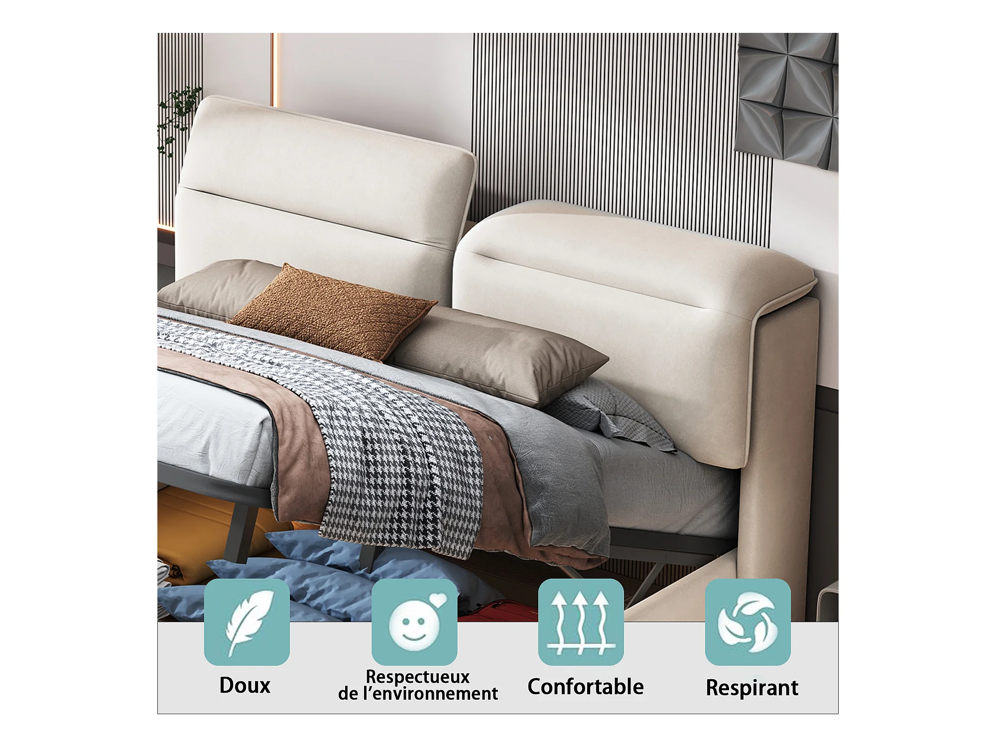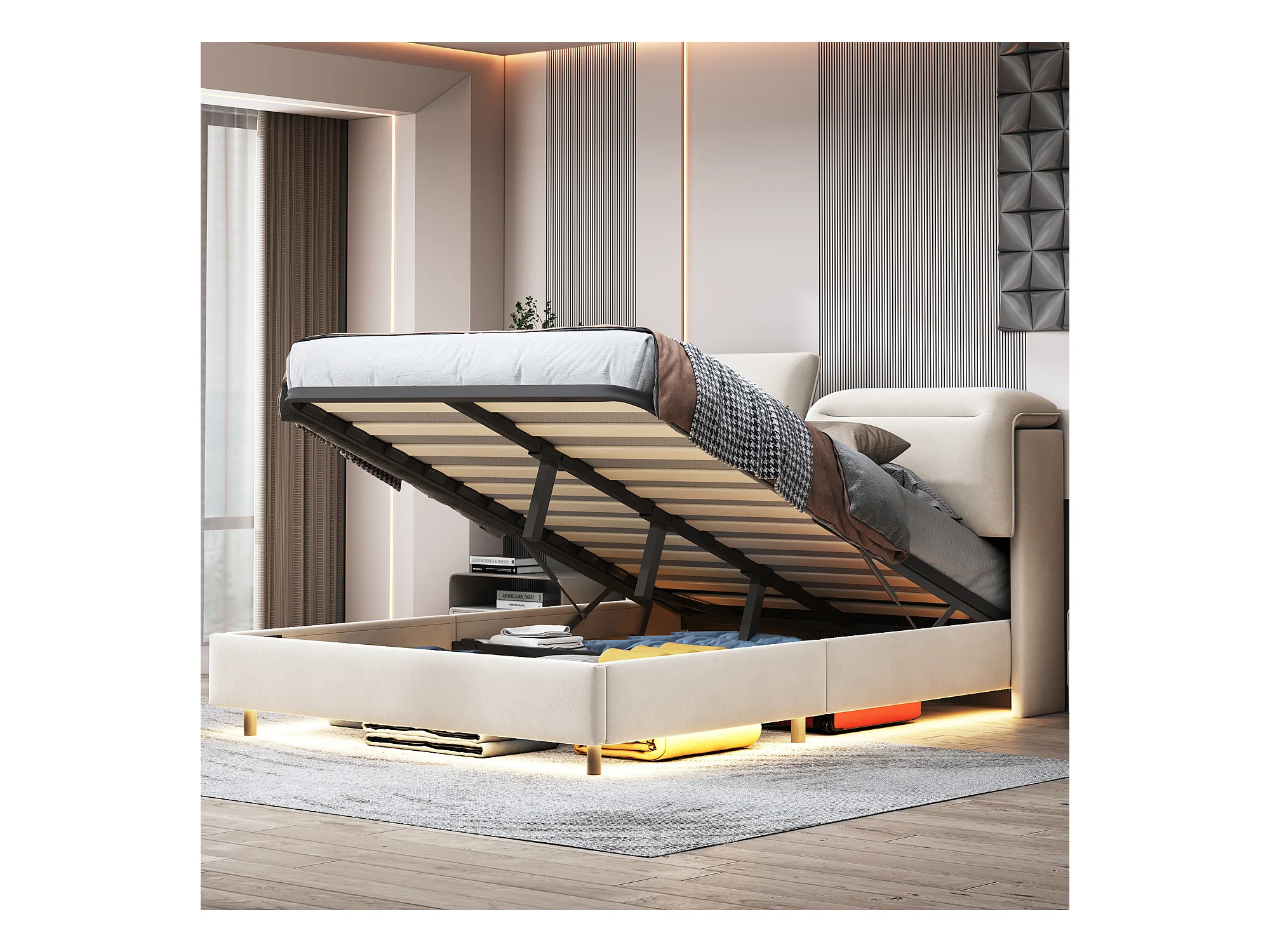 Contenitore idraulico, letto matrimoniale 160*200cm, comodino pieghevole, con LED, velluto, beige