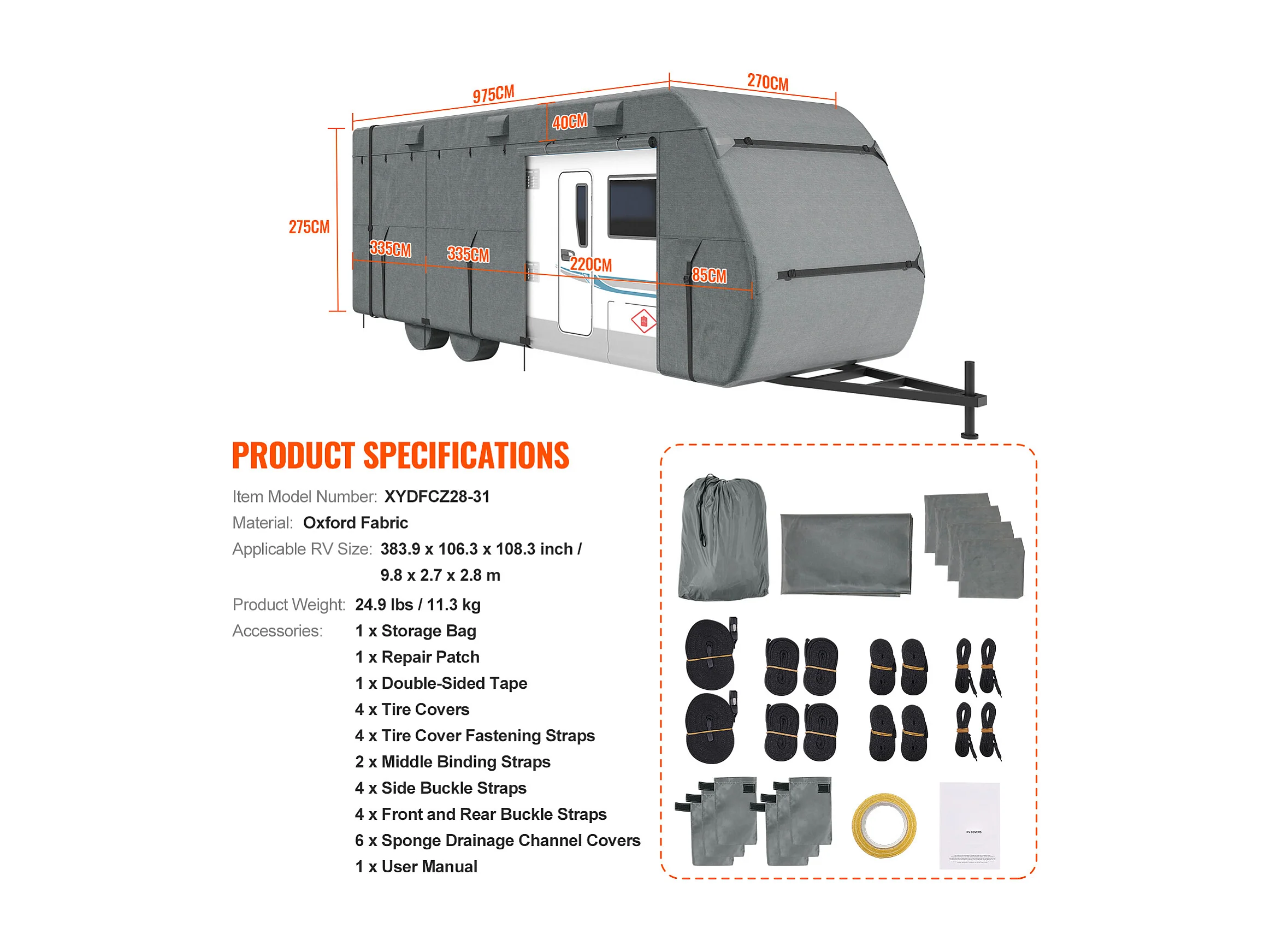 Copertura di Protezione per Camper SucceBuy, Tenda di Protezione per Camper 8,5-9,5 m, in Oxford 300D