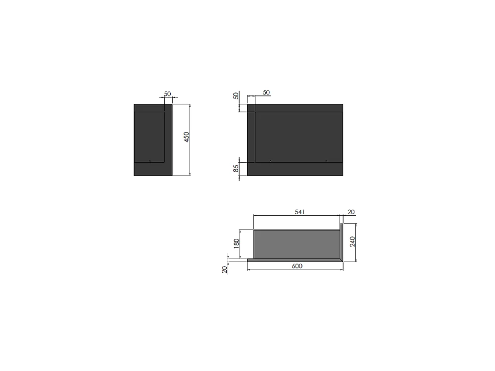 Caminetto a Bioetanolo Frame 600 nero opaco da incasso a parete senza vetro