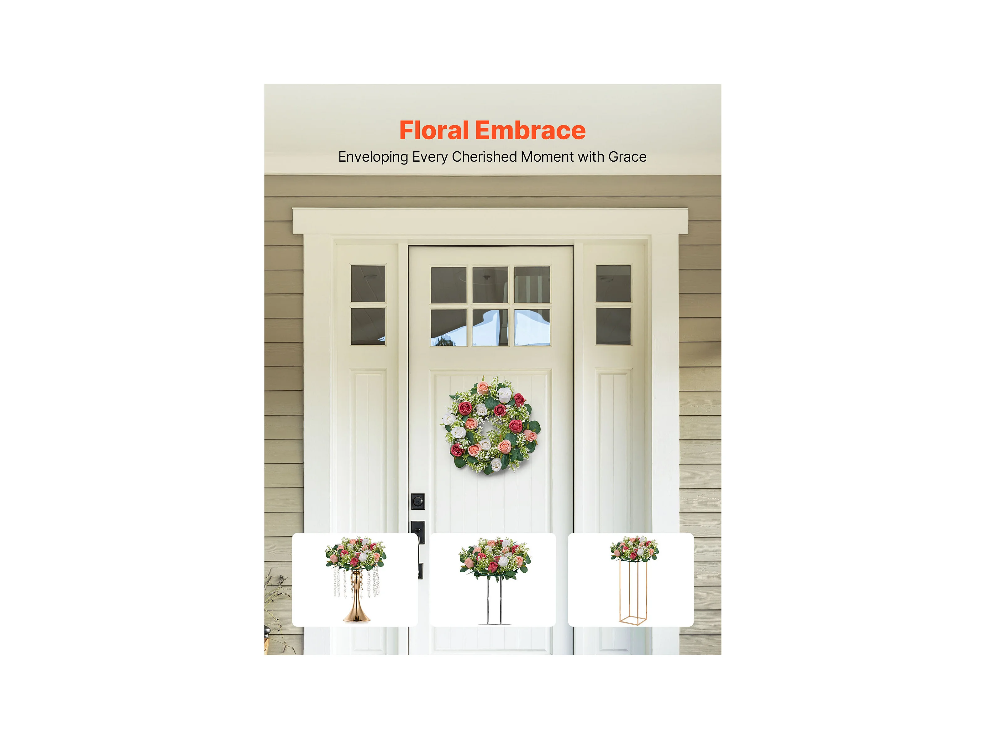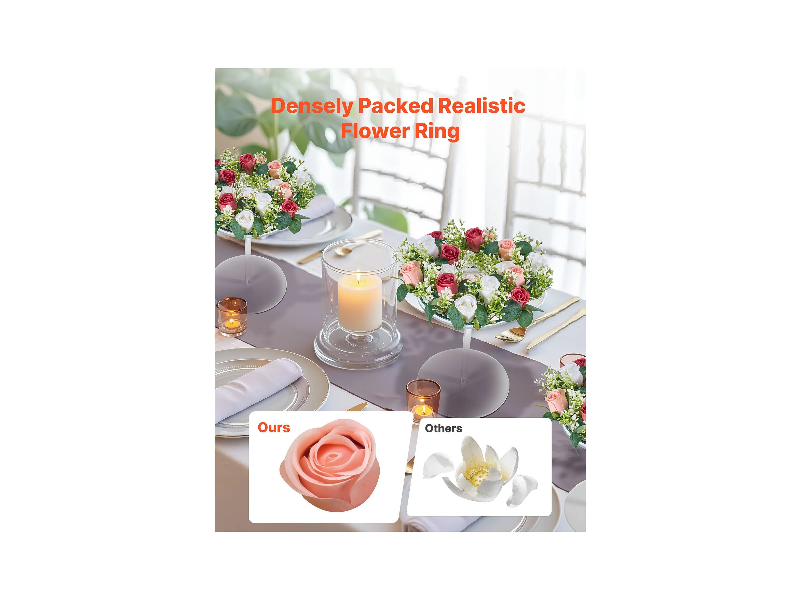 Corona di Rose SucceBuy Artificiali, Lotto di 10, 34 cm, Composizioni di Rose in Rosa e Bianco Artificiali, Fiori Finti per Centrotavola