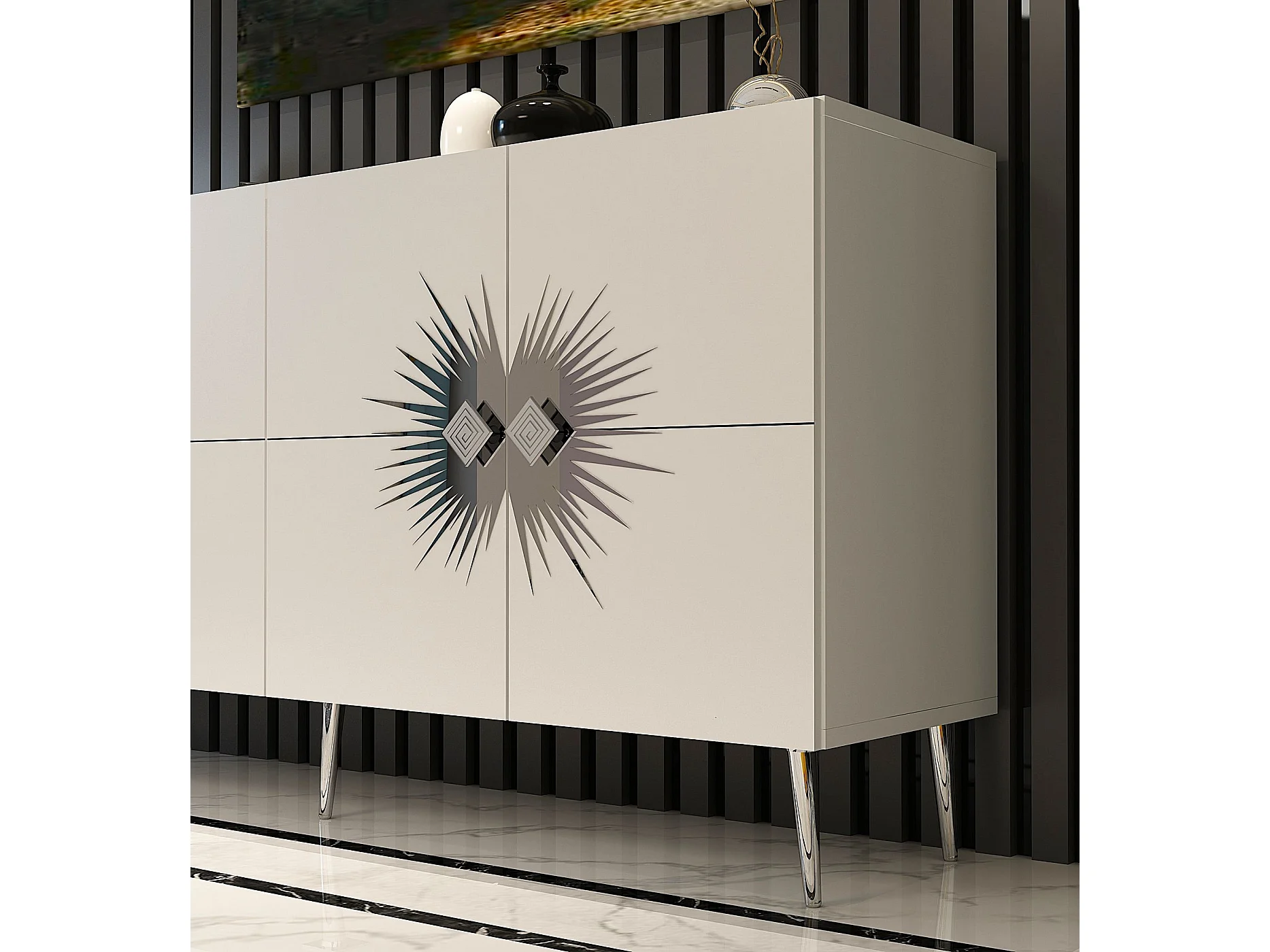 Credenza – 150 cm – Bianco e Argento – Pannello di particelle rivestito in melaminico