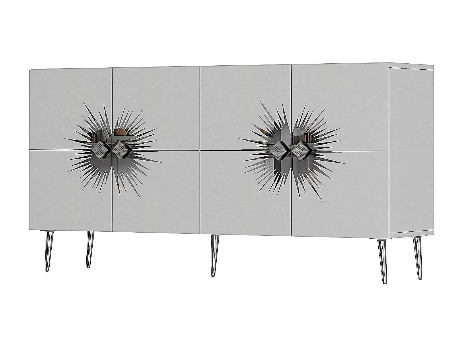 Credenza – 150 cm – Bianco e Argento – Pannello truciolare con rivestimento in melaminico