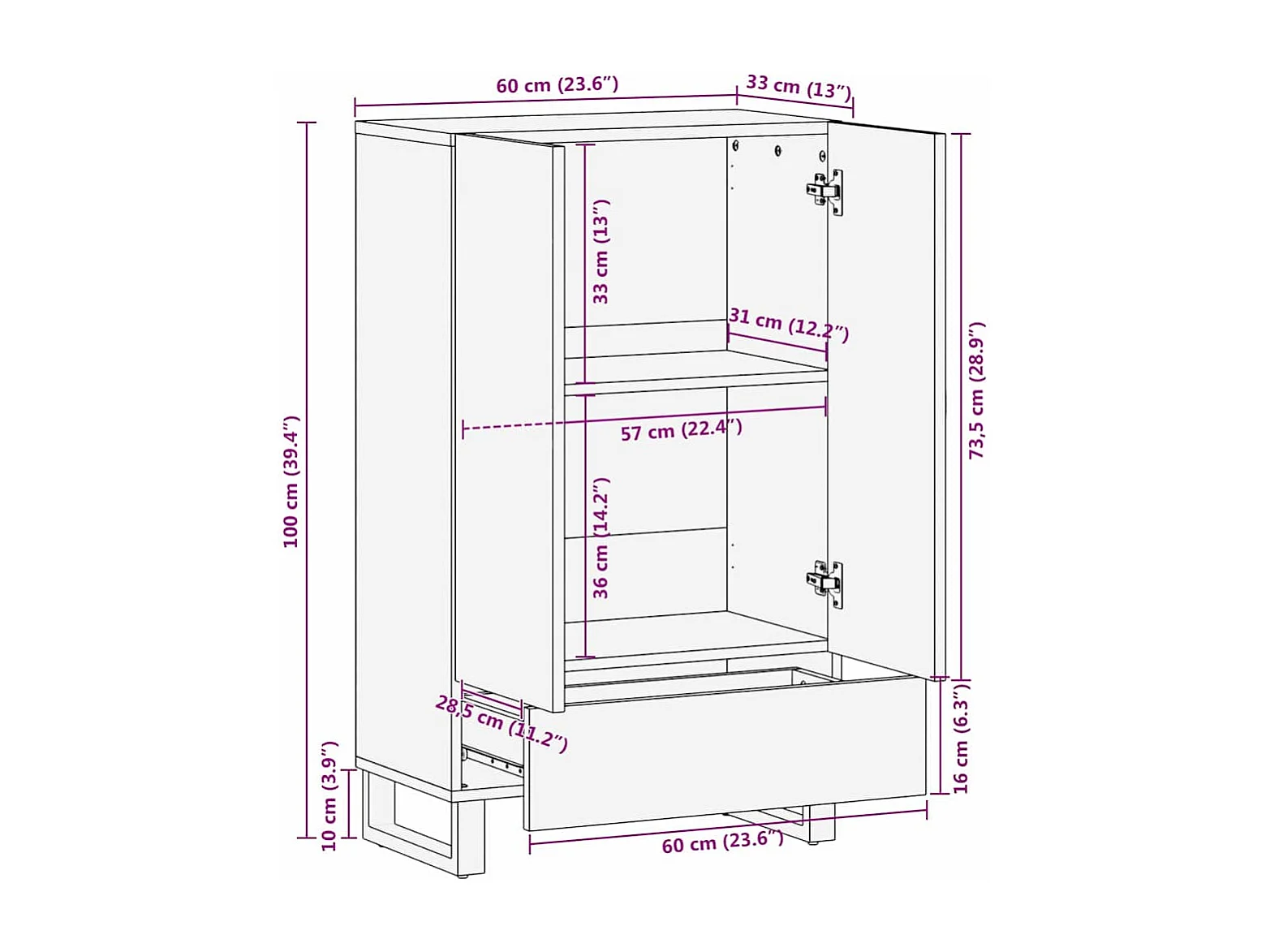 Credenza 60 x 33,5 x 75 cm in legno massello di mango
