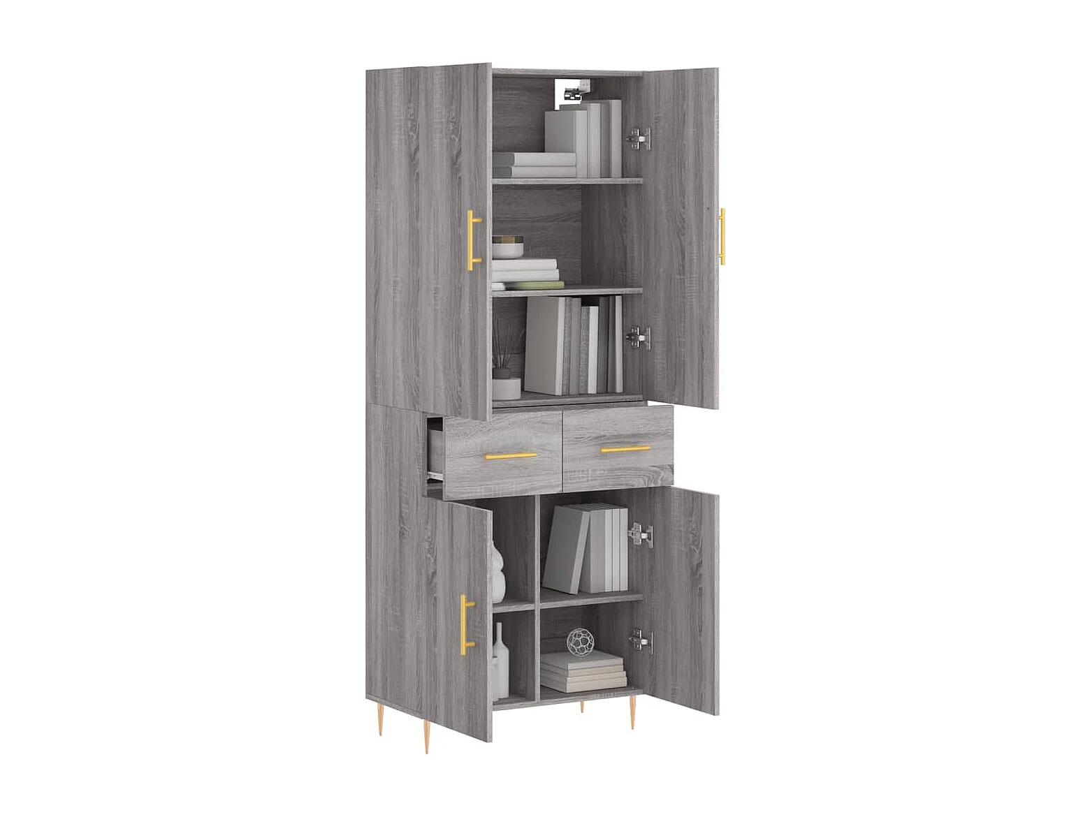 Credenza alta Sonoma grigia 69,5x34x180 cm Legno ingegnerizzato