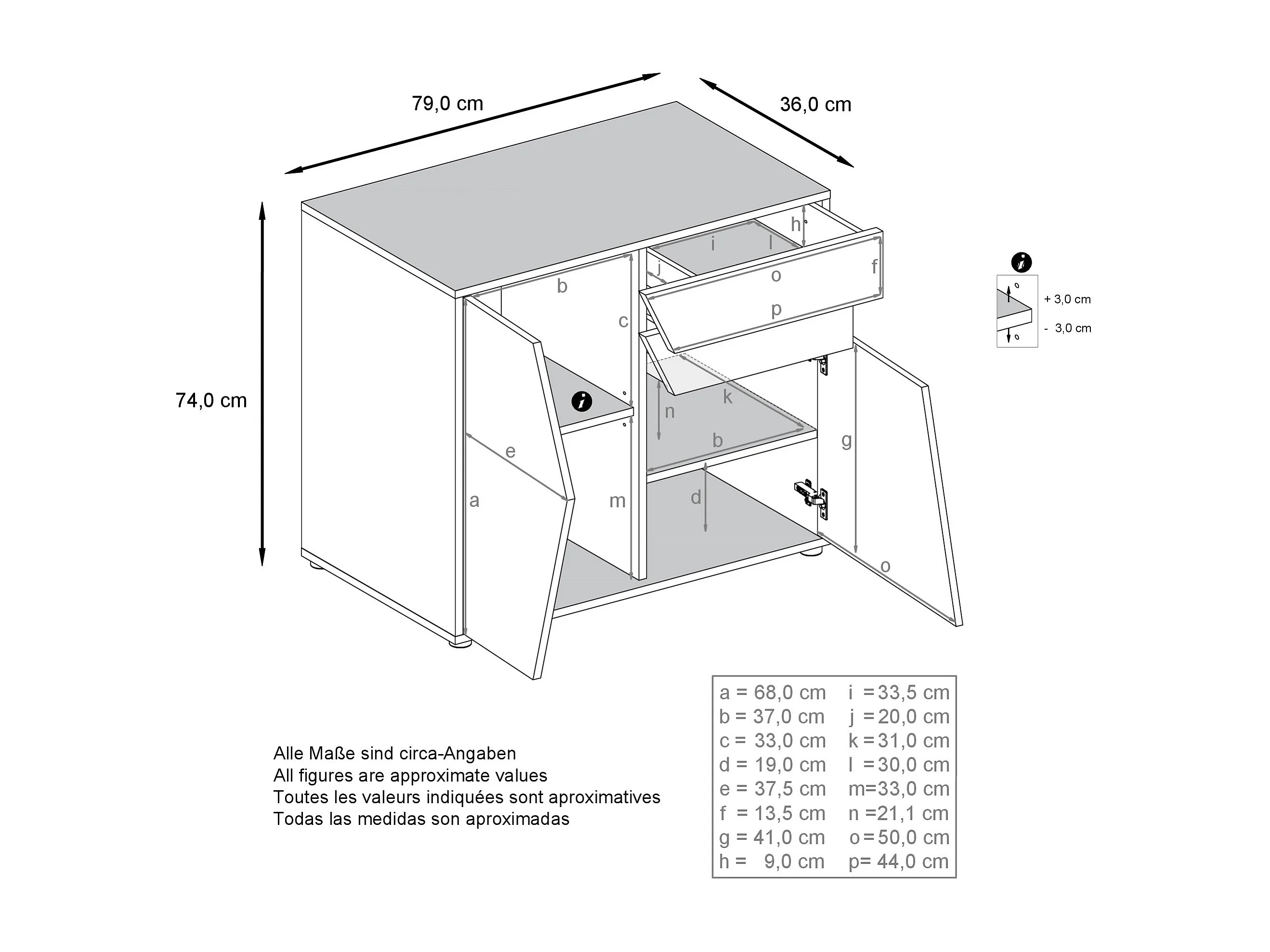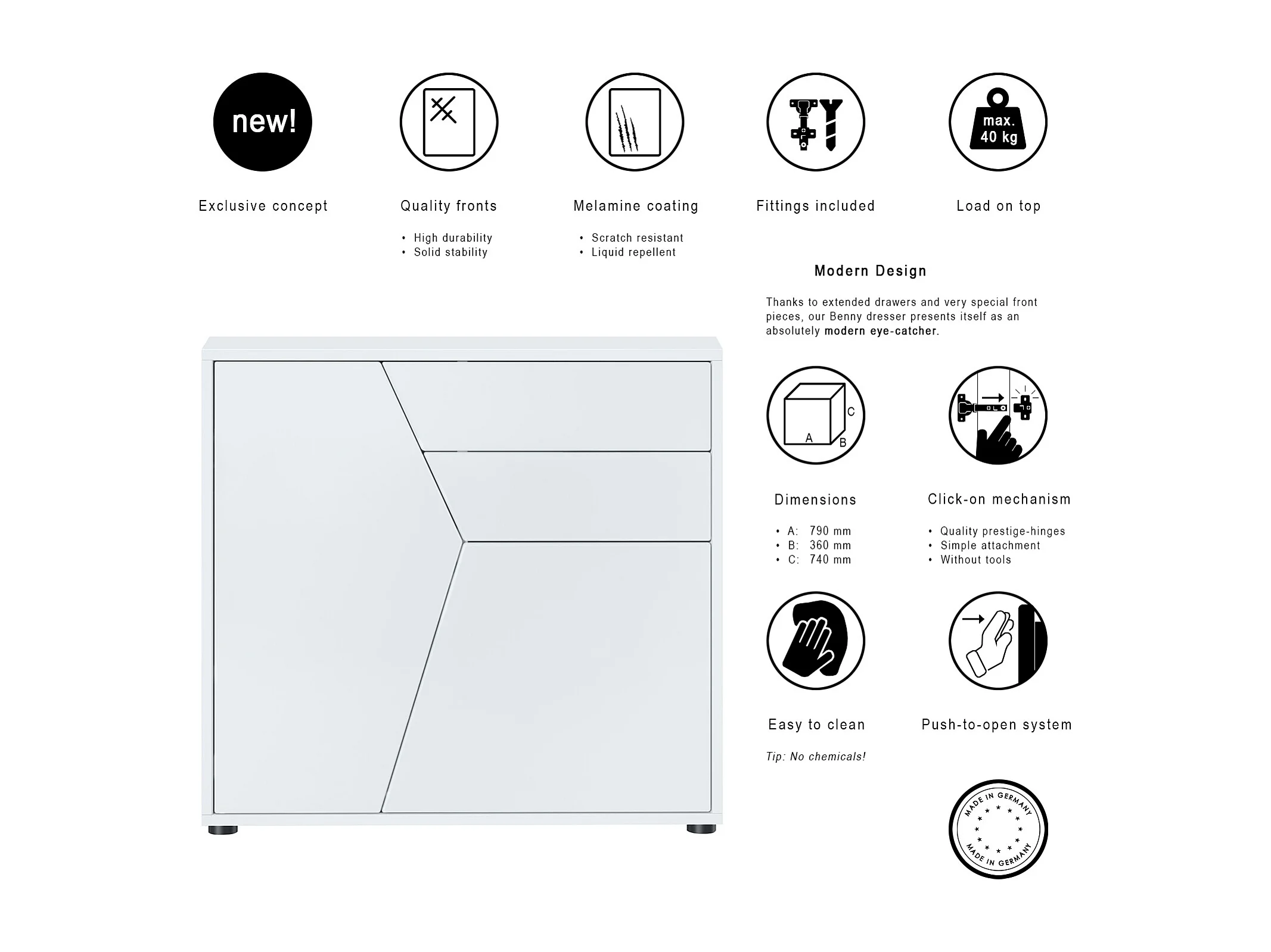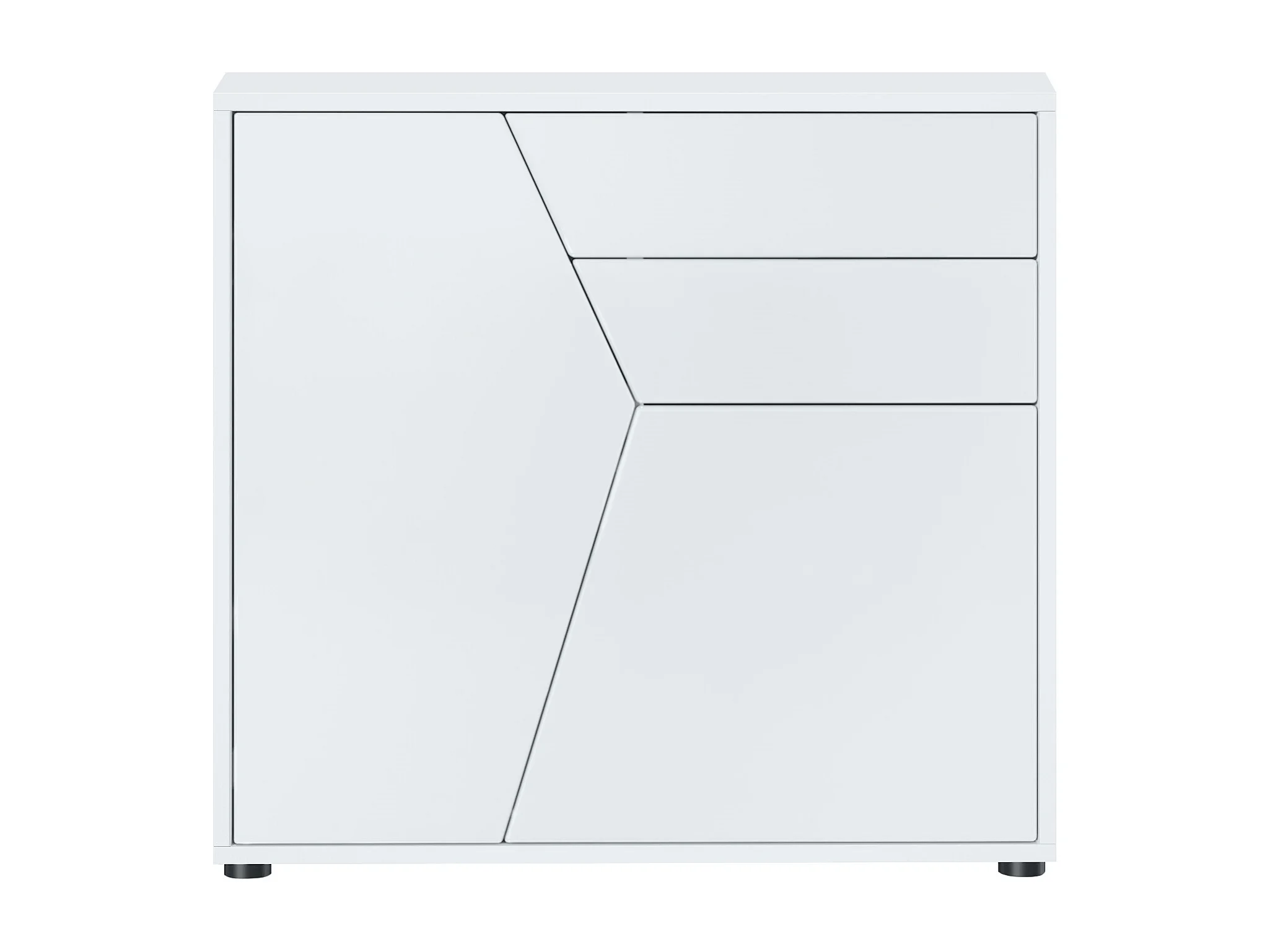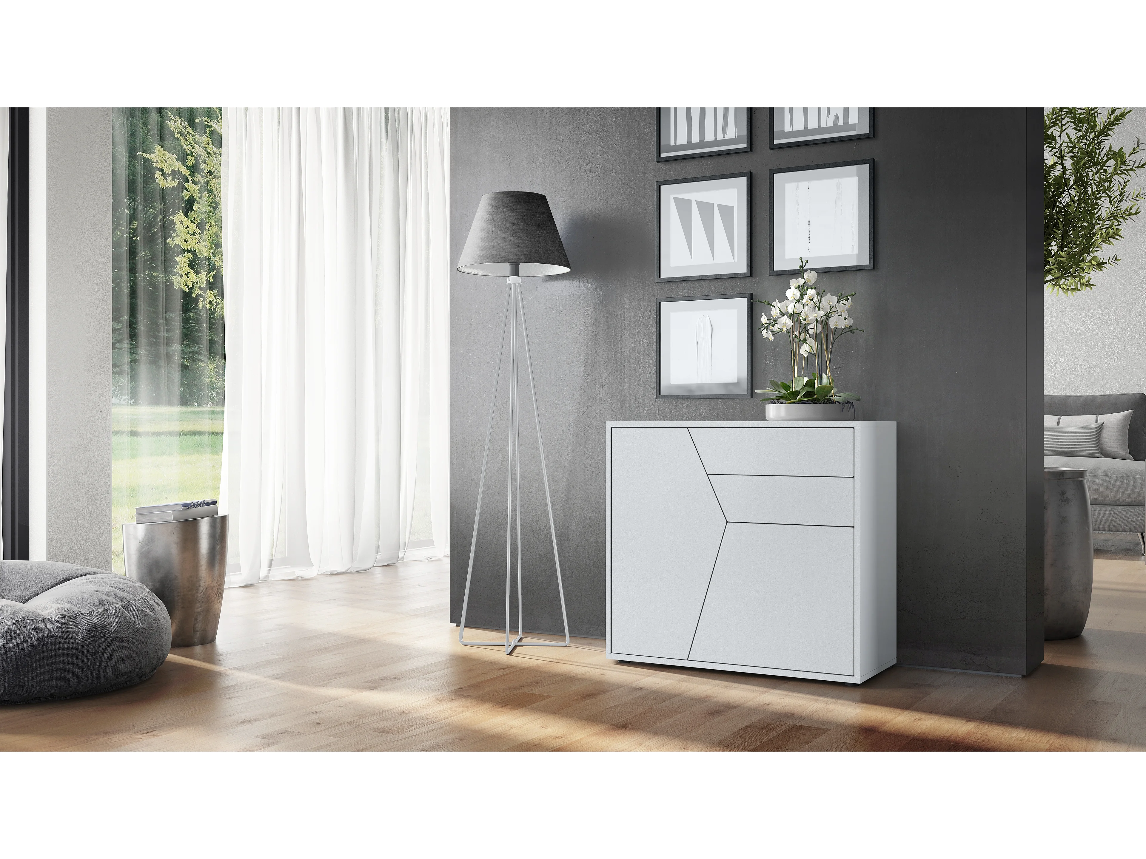 Credenza Benny, mobile con 2 ante e 2 cassetti, bianco opaco/bianco opaco (79 x 74 x 36 cm)