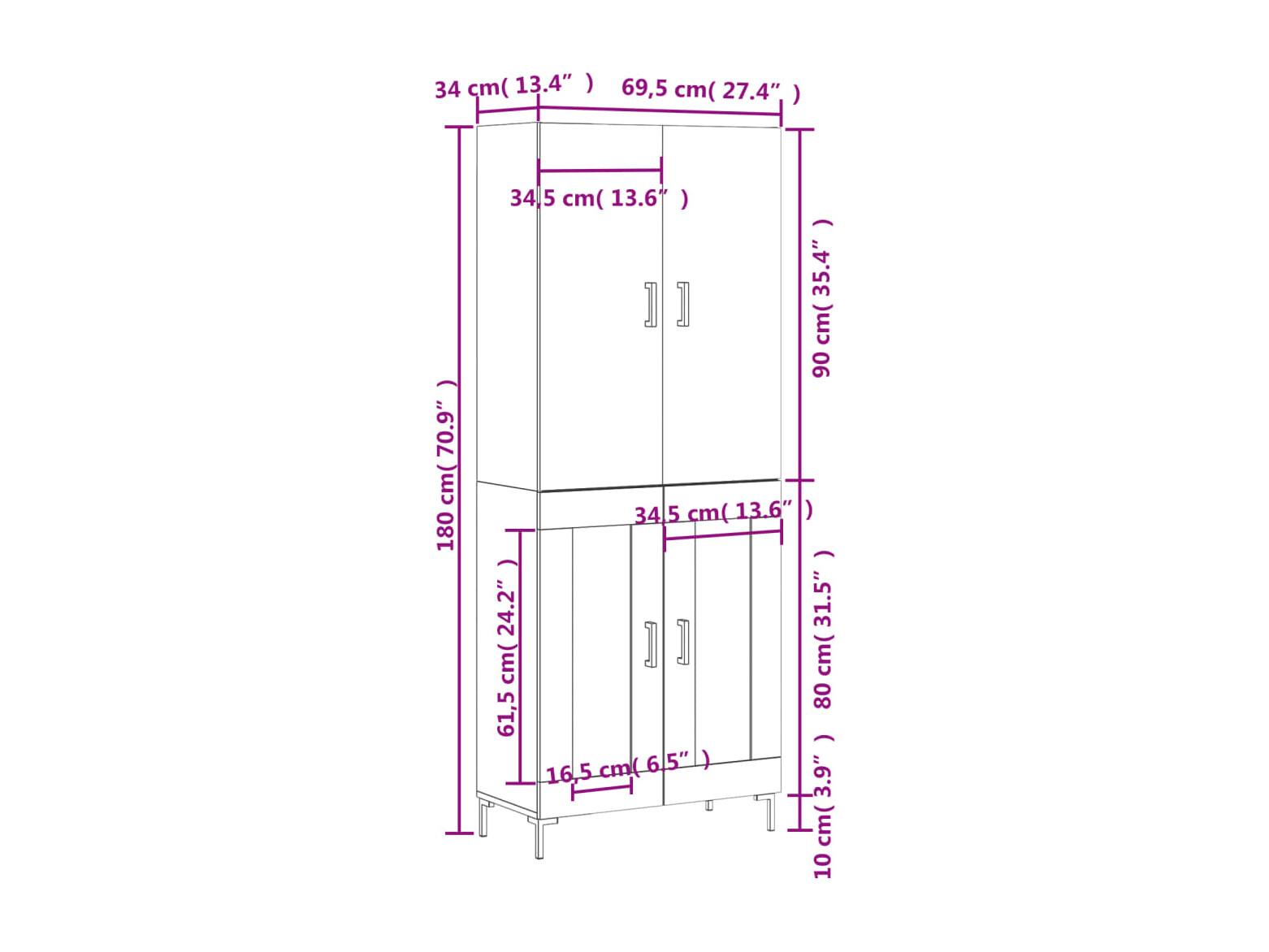 Credenza Bianca 69,5x34x180 cm in Legno Multistrato