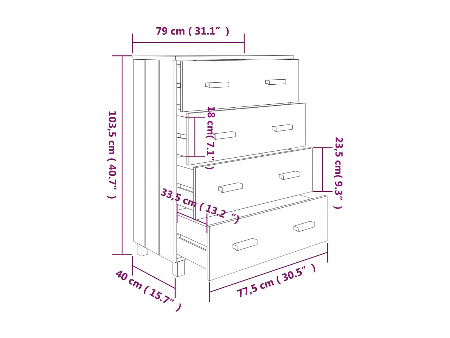 Credenza bianca HAMAR 79x40x103,5 cm in legno massello di pino