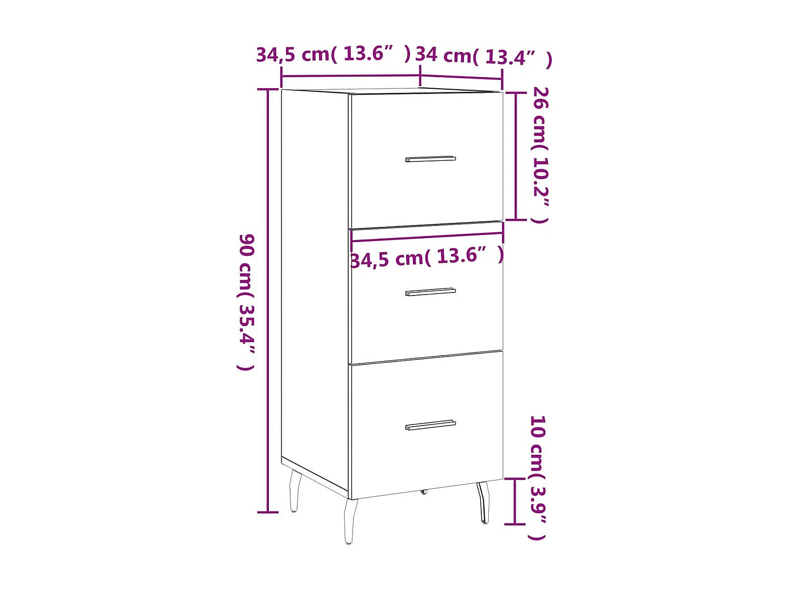 Credenza Bianco Lucido 34,5x34x90 cm in Legno Multistrato