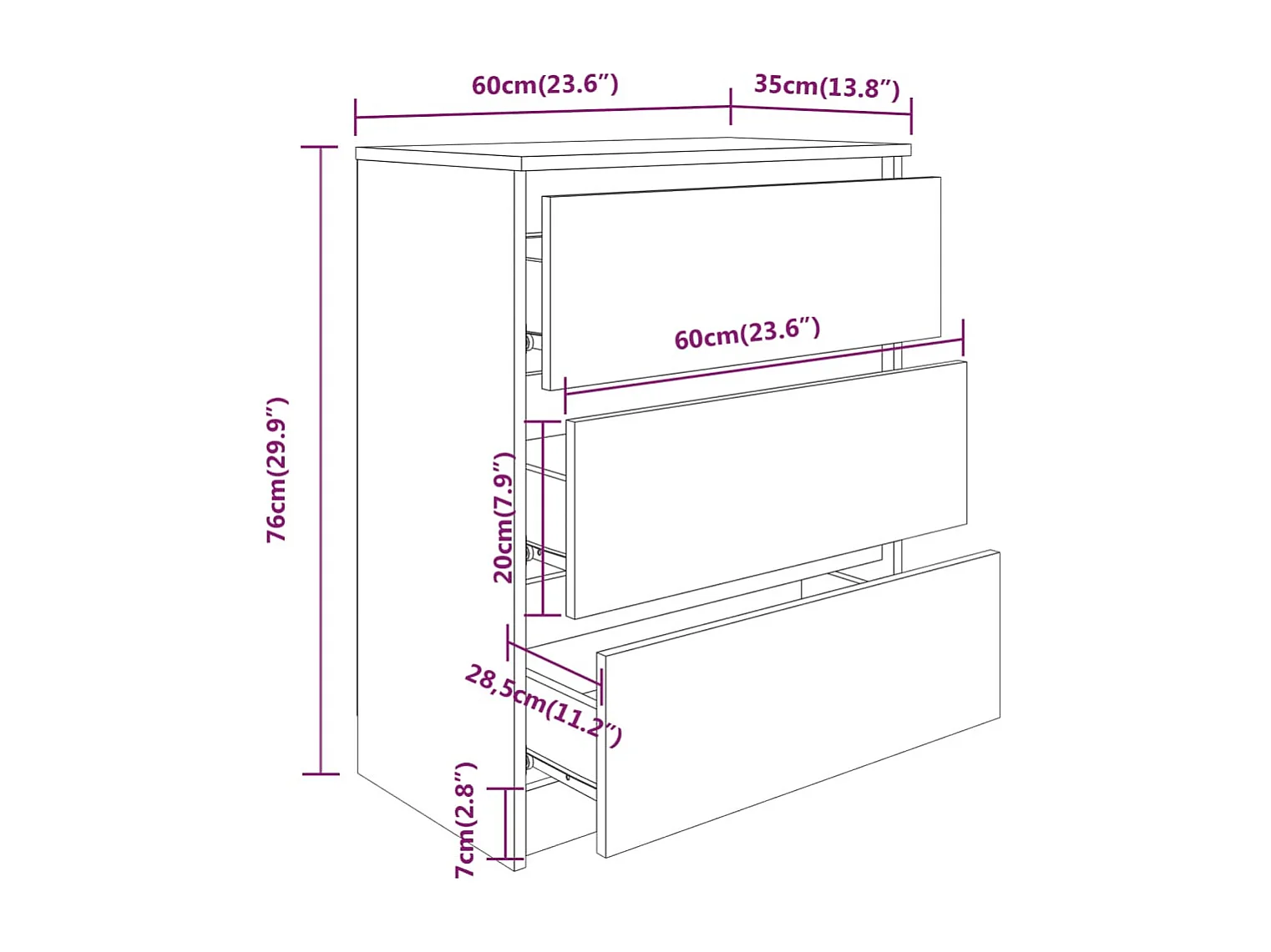 Credenza Bianco Lucido 60x35x76 cm in Legno Compensato