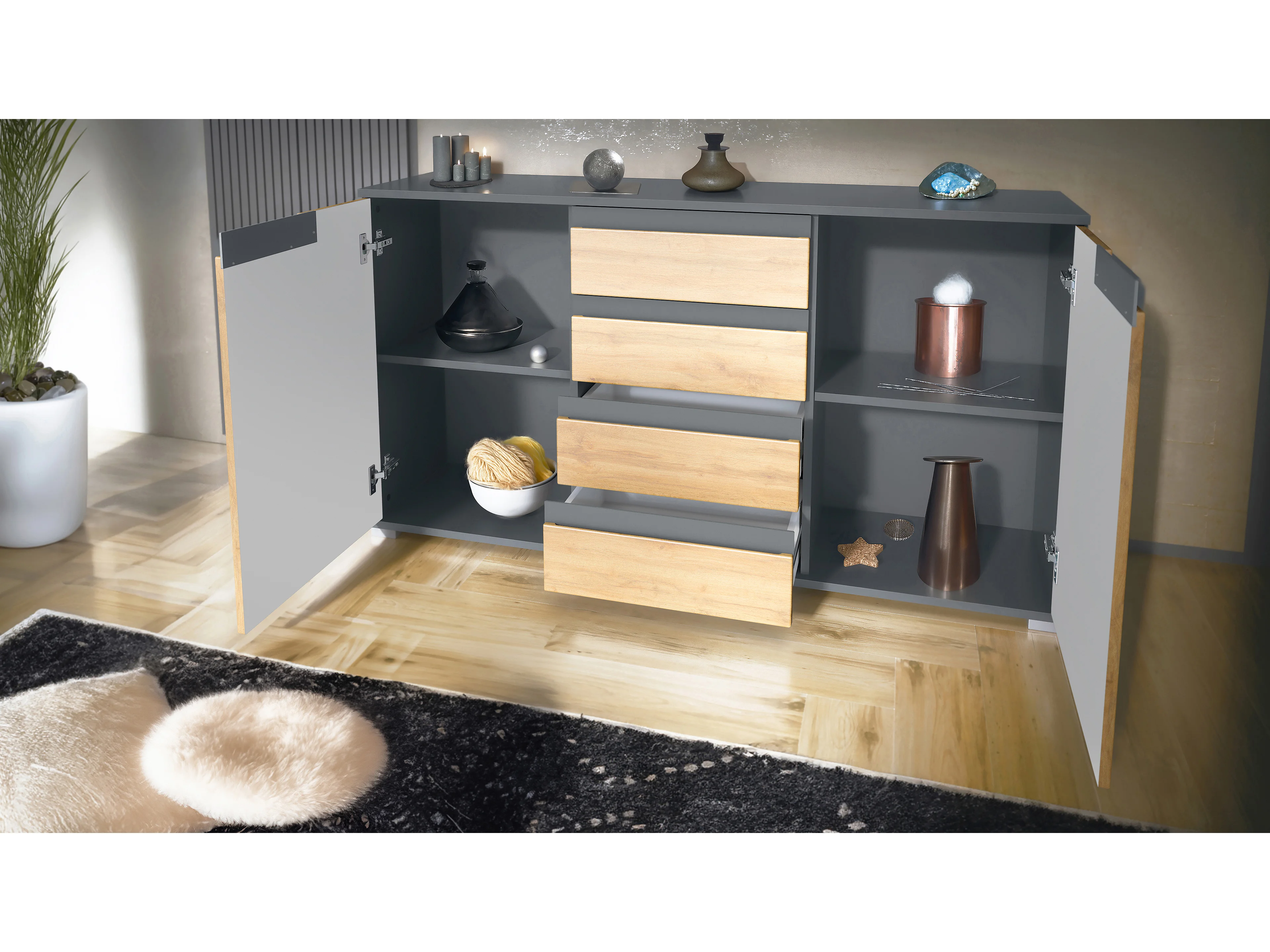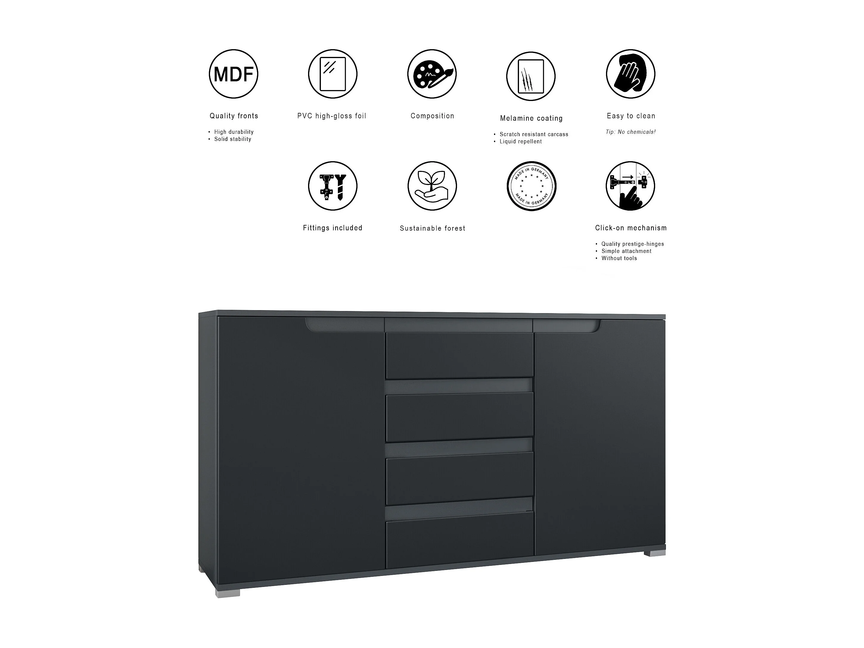 Credenza Cassettiera Sylt, struttura in nero opaco / frontale in bianco lucido con compensazioni in nero lucido (139 x 72 x 35)
