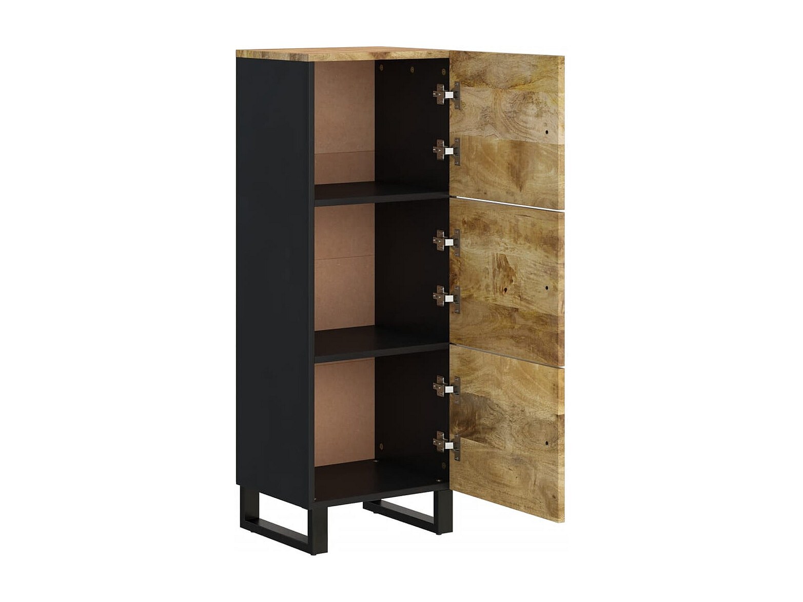 Credenza con 3 Ante 40x33x110 cm Legno Massello Mango e Ferro