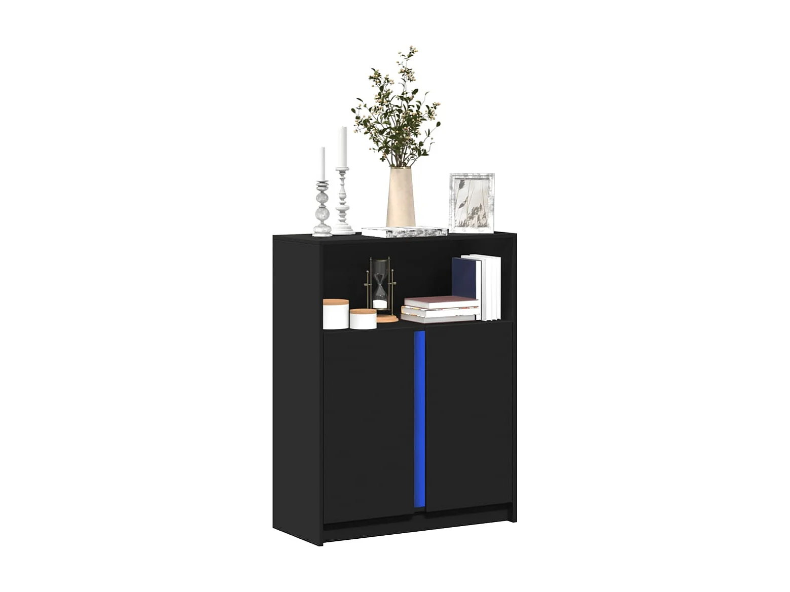 Credenza con LED Nera 77x34x100 cm in Legno Multistrato