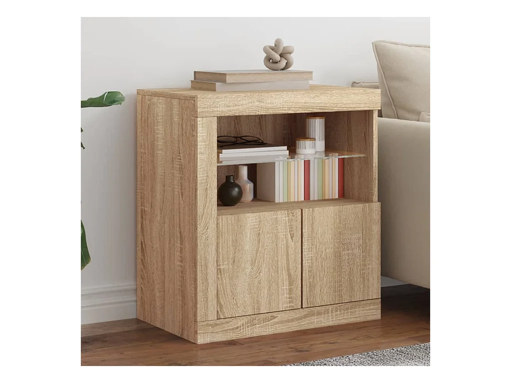 Credenza con Luci LED Rovere Sonoma 60,5x37x67 cm