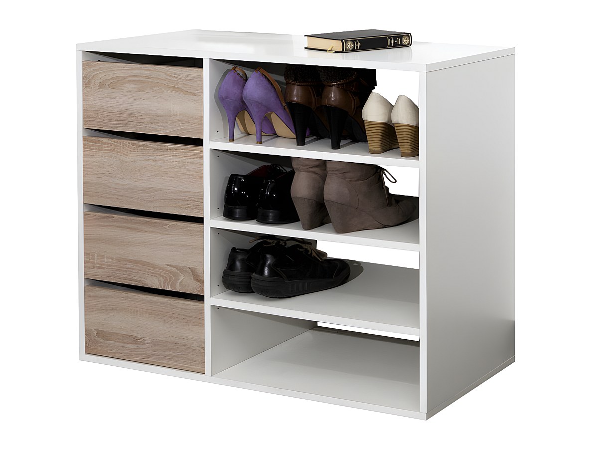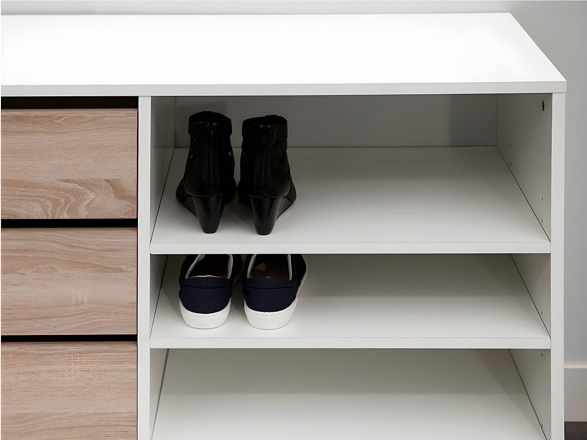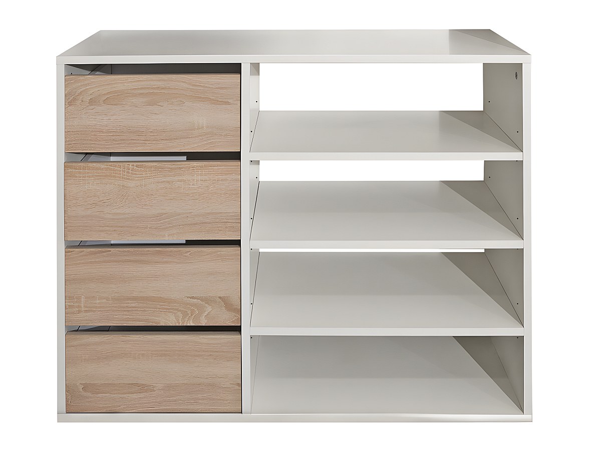 La credenza EMERIC è dotata di 4 cassetti e 4 nicchie, perfetti per organizzare e sistemare! Gli scaffali regolabili in altezza ti permettono di modificarli in funzione delle tue esigenze (sono perfetti per le scarpe alte, ad esempio).