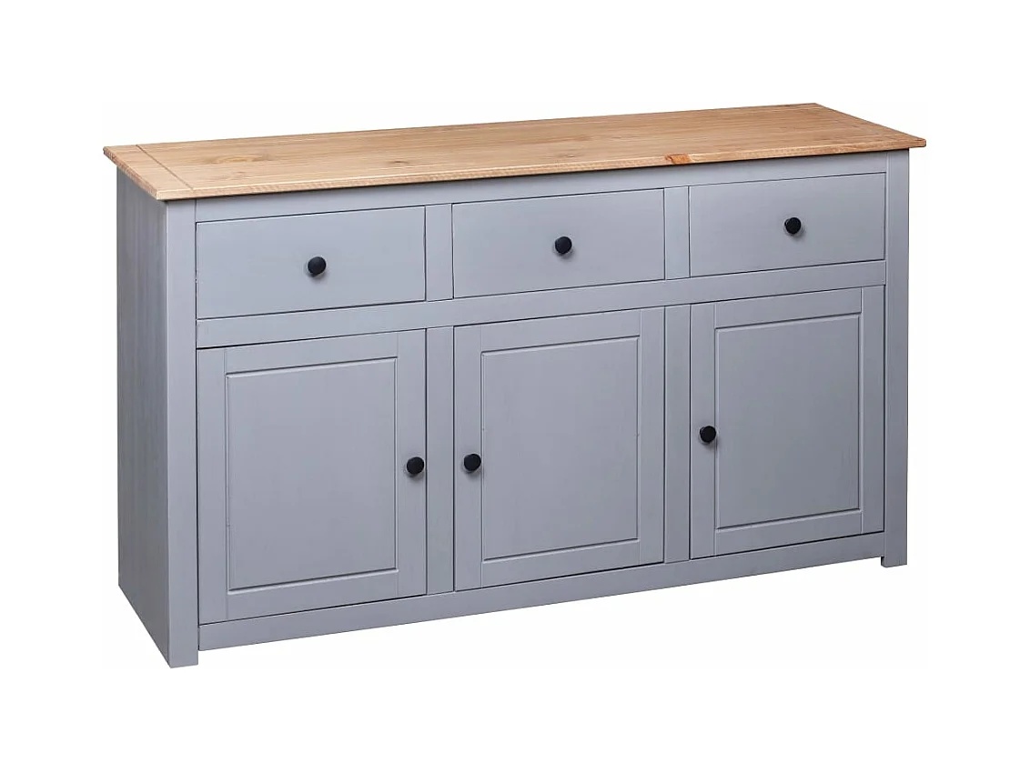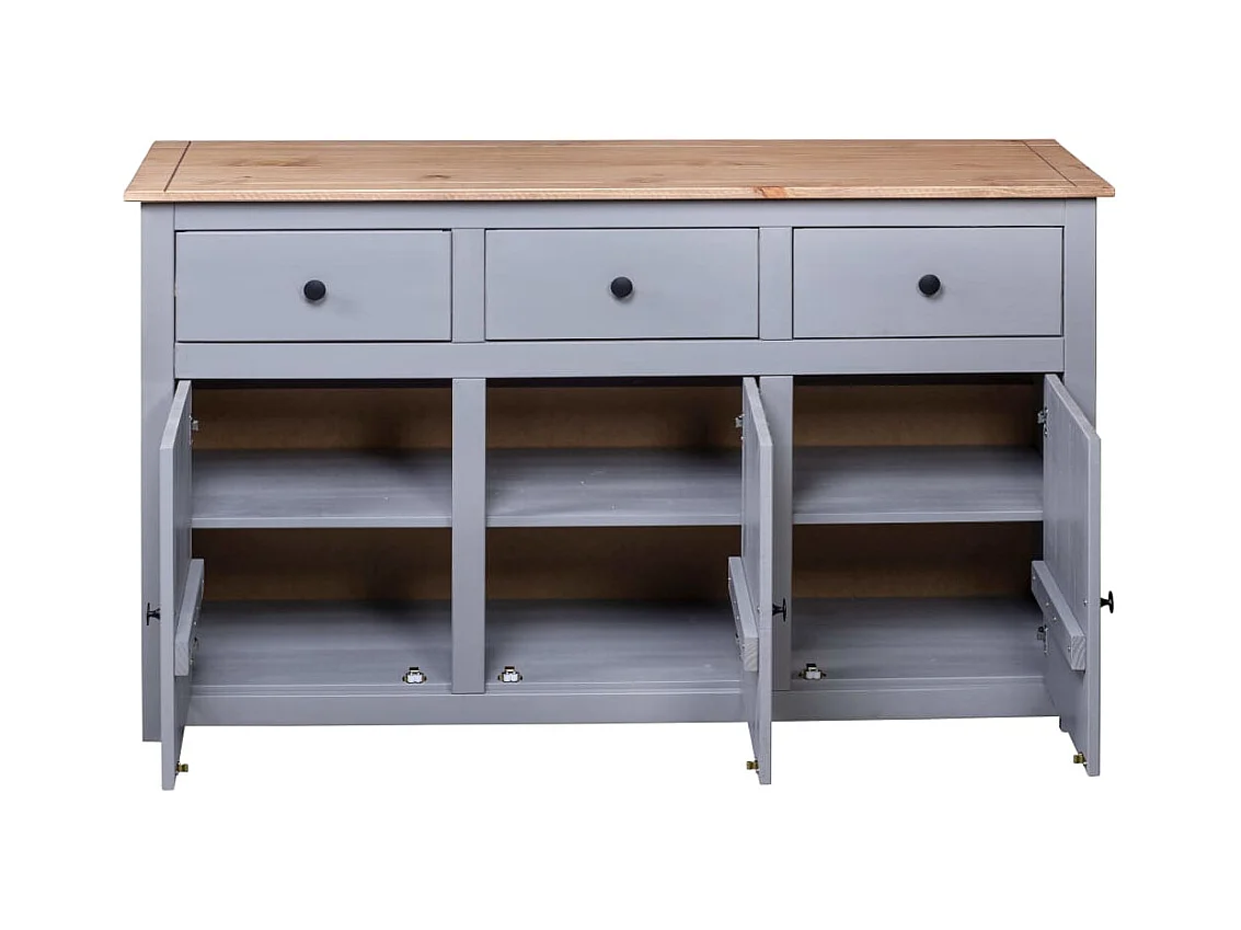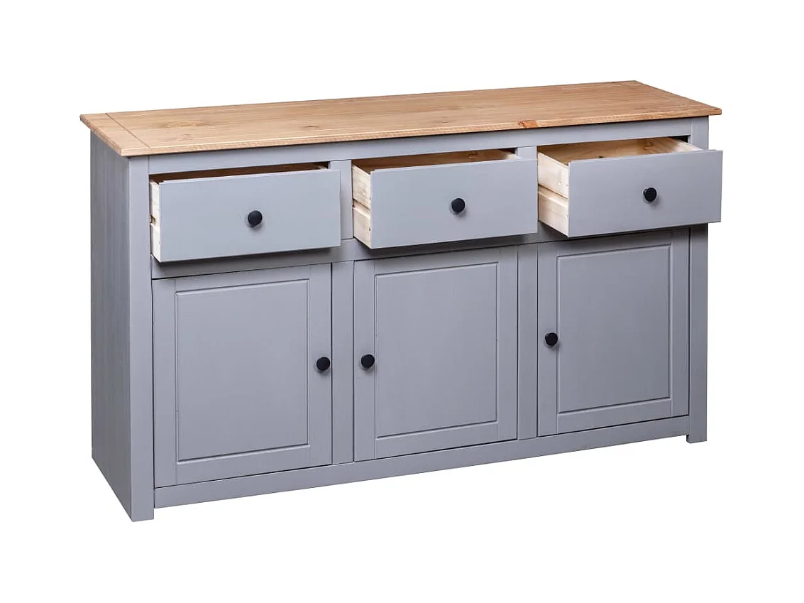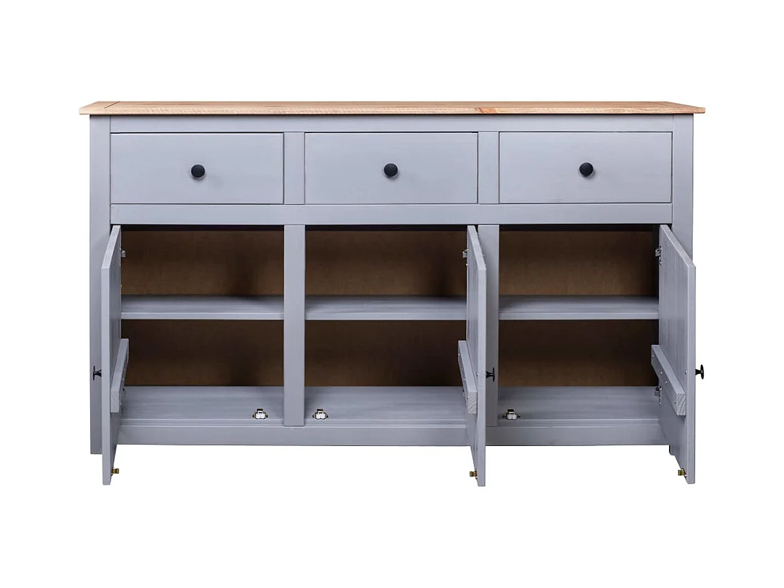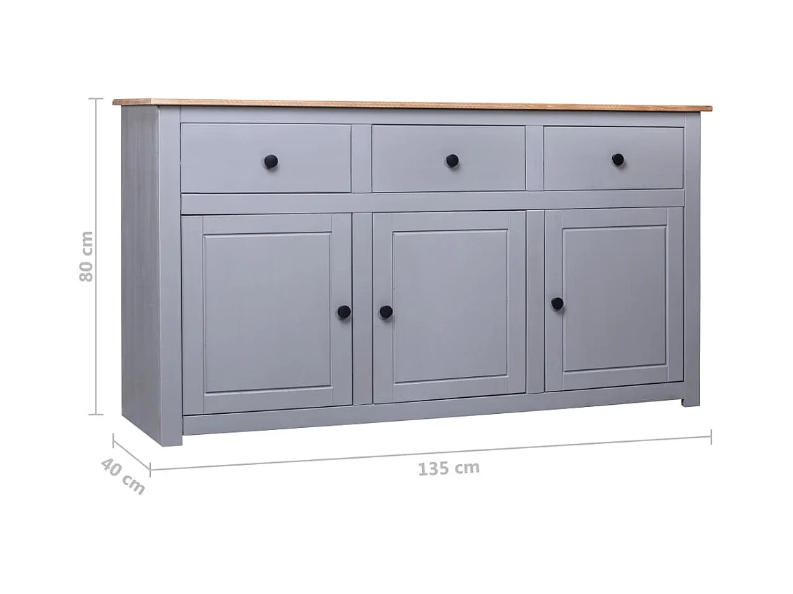 Credenza Grigia 135x40x80 cm in Legno Massello di Pino Panama