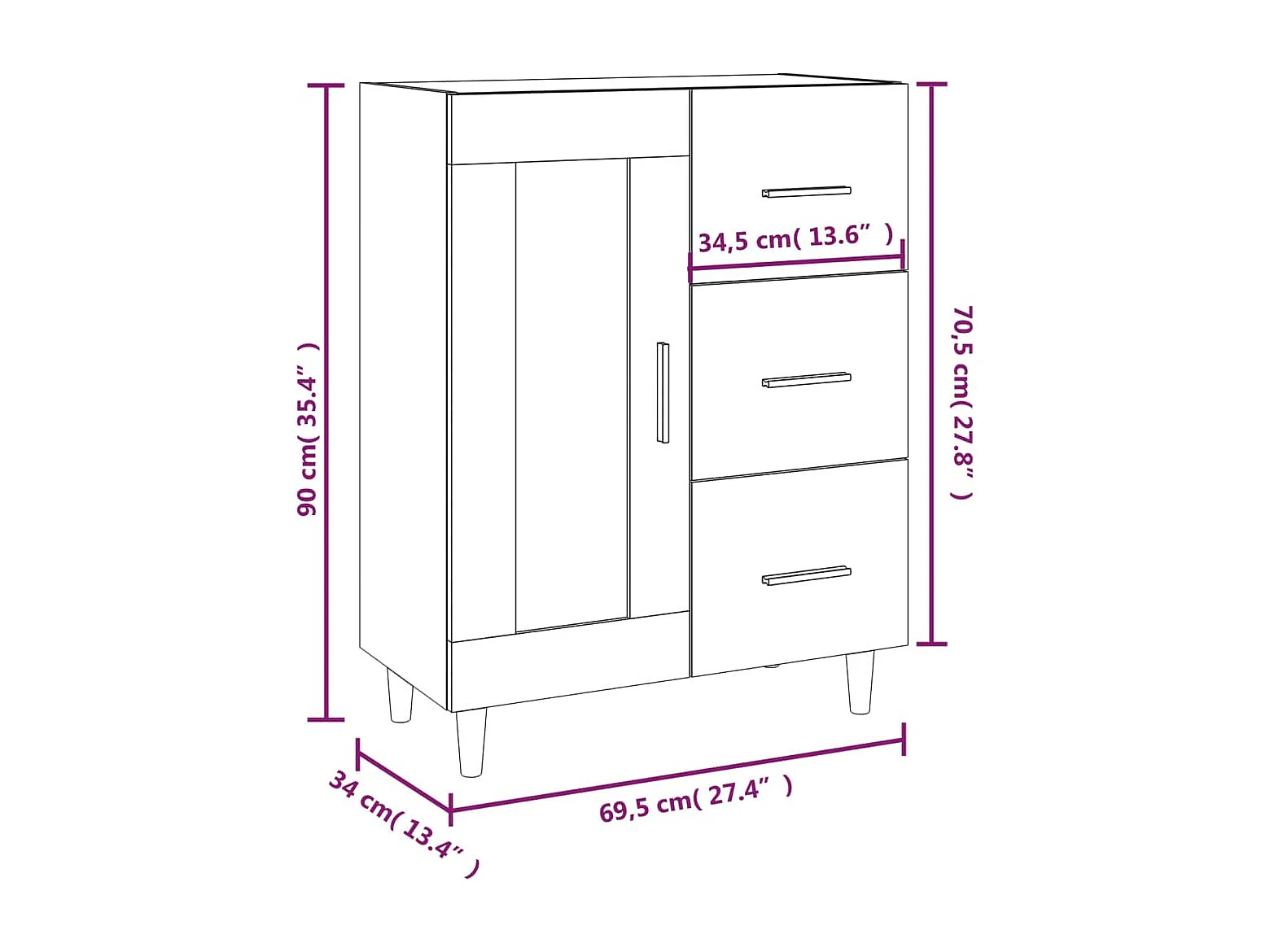 Credenza Grigio Sonoma 69,5x34x90 cm in Legno Multistrato