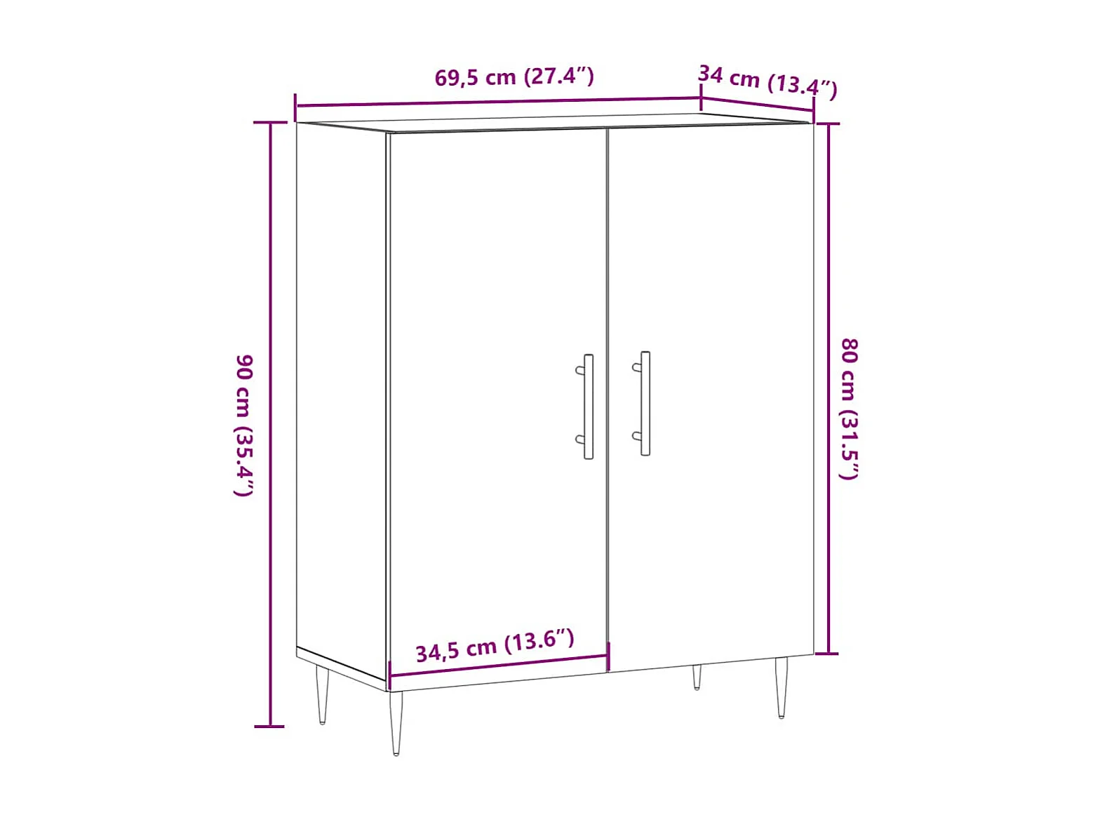 Credenza Rovere marrone 69,5x34x90 cm Legno composito