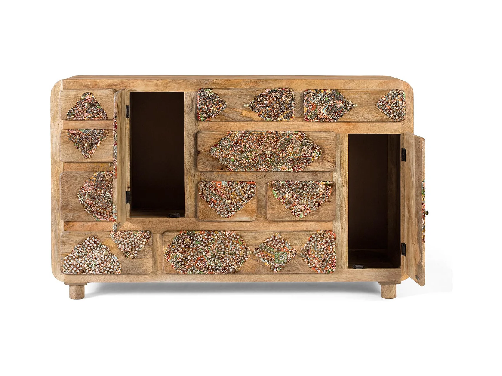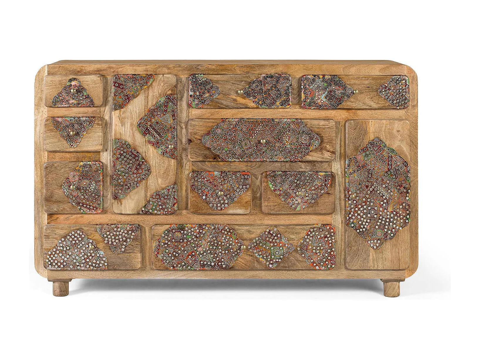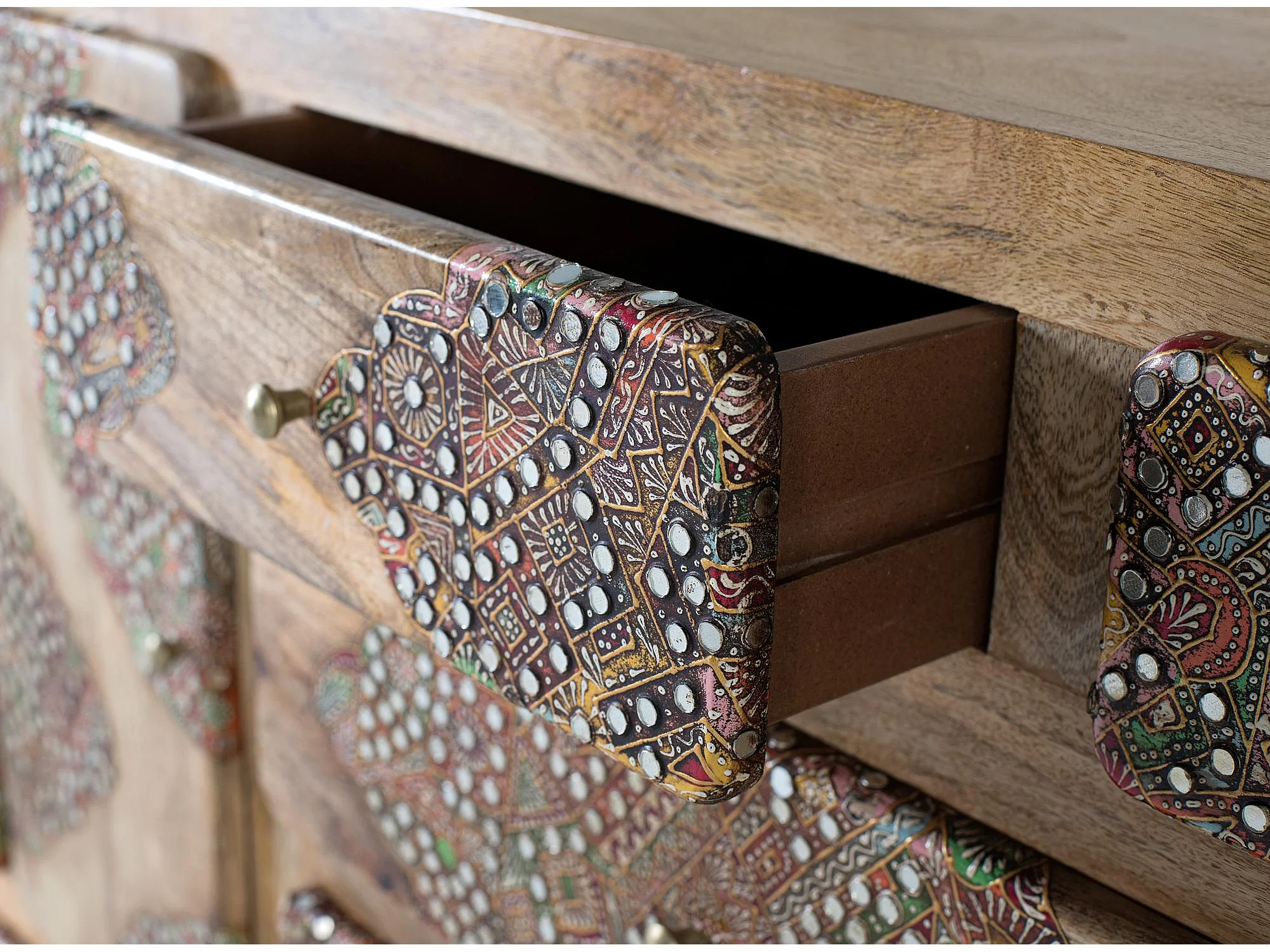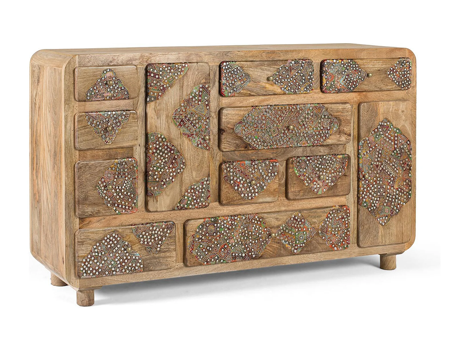 Credenza in legno massello di mango con dettagli dipinti 148 cm
