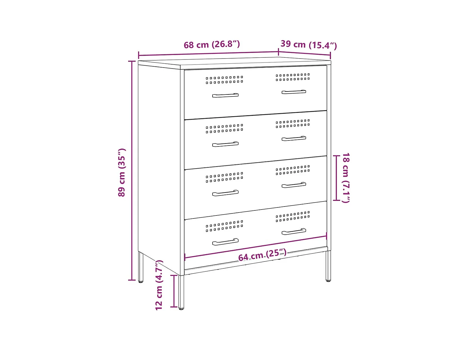 Credenza Rosa 68x39x89 cm in Acciaio