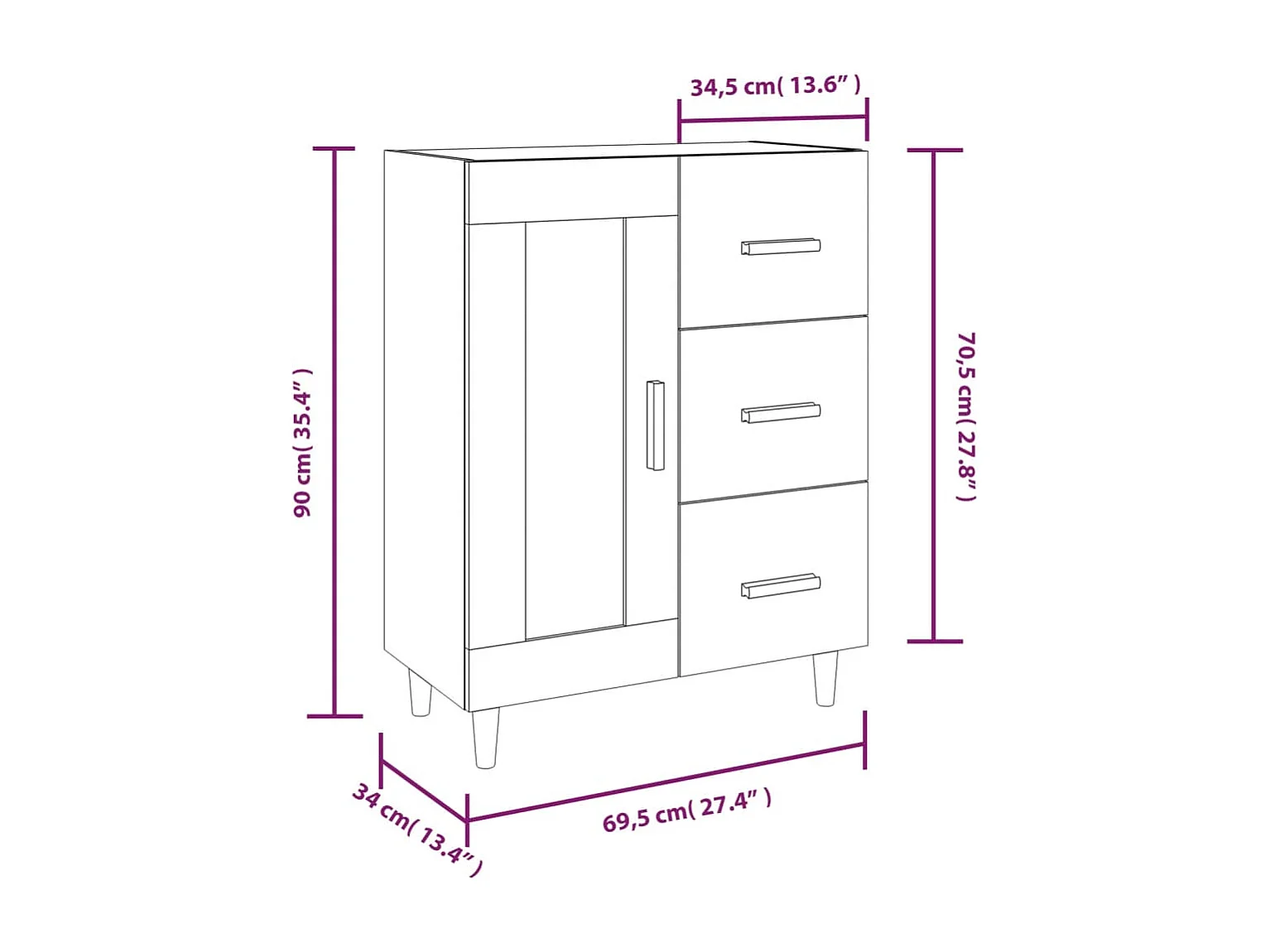 Credenza Sonoma grigia 69,5x34x90 cm Legno ingegnerizzato