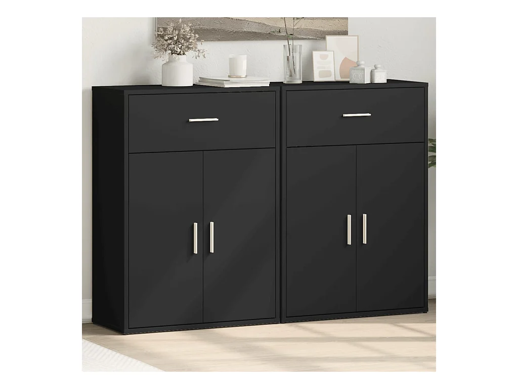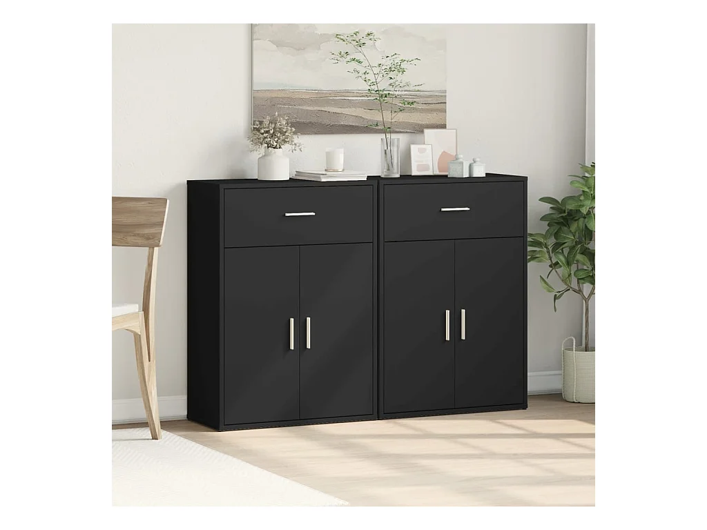 Credenze 2 pz Nere 60x30x84 cm in Legno Multistrato