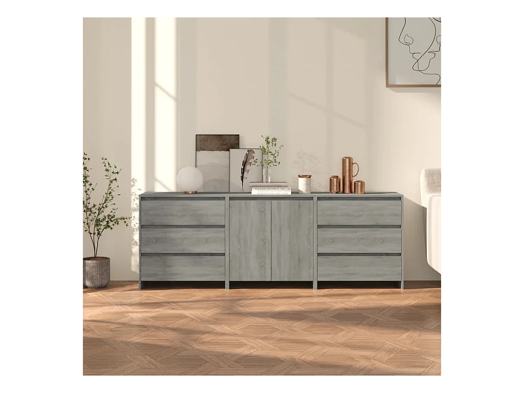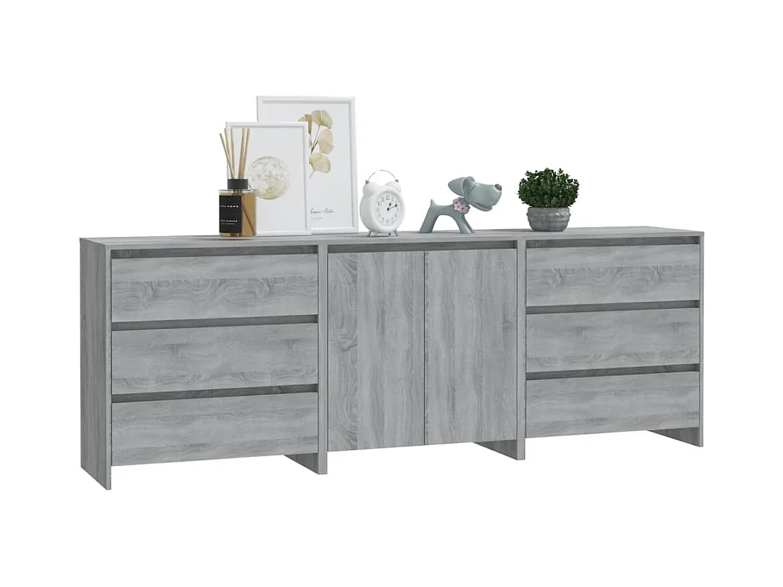 Credenze 3 pz Grigio Sonoma in Legno Multistrato