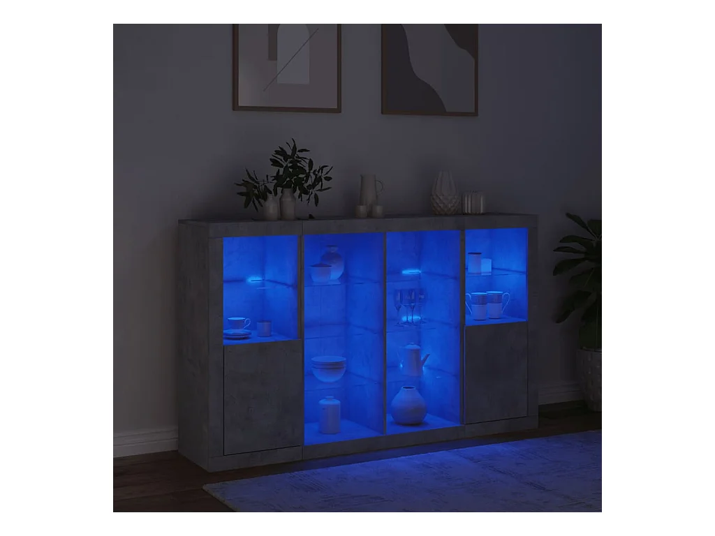 Credenze con luci a LED 3 pezzi in legno ingegnerizzato grigio cemento