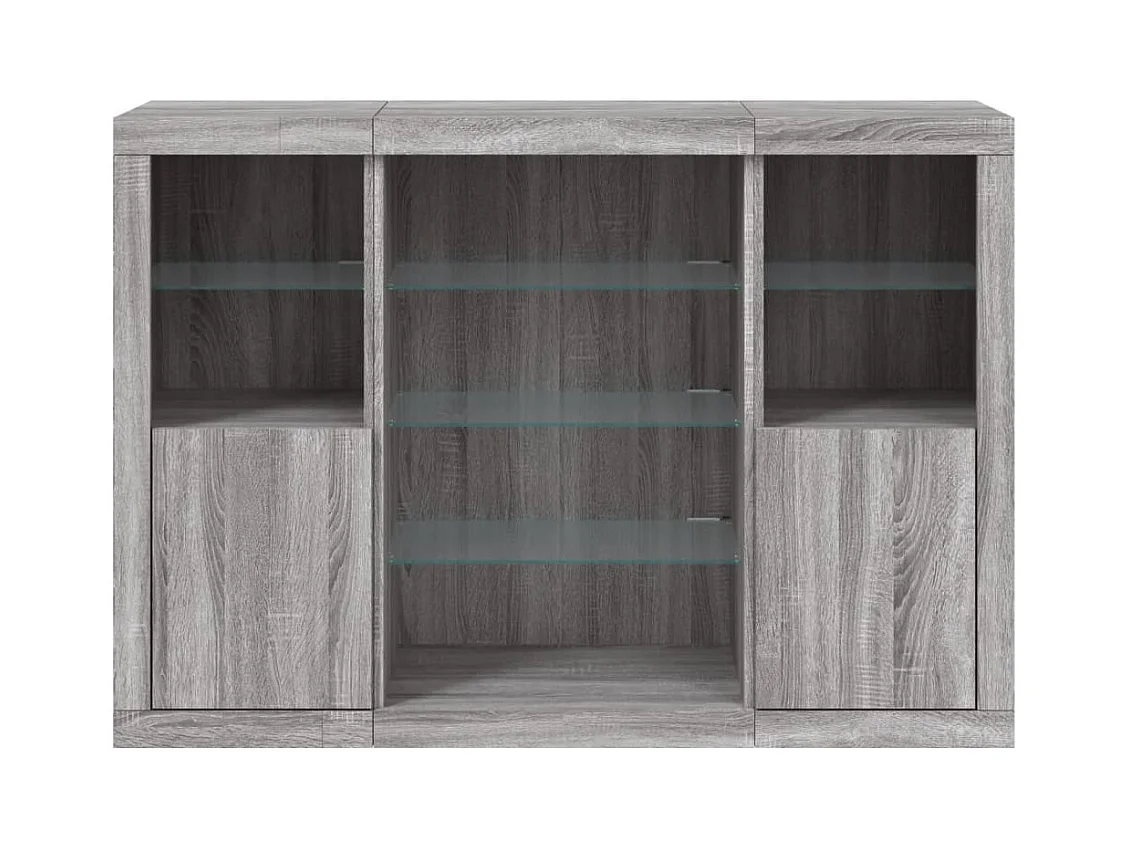 Credenze con Luci LED 3 pz Grigio Sonoma in Legno Multistrato