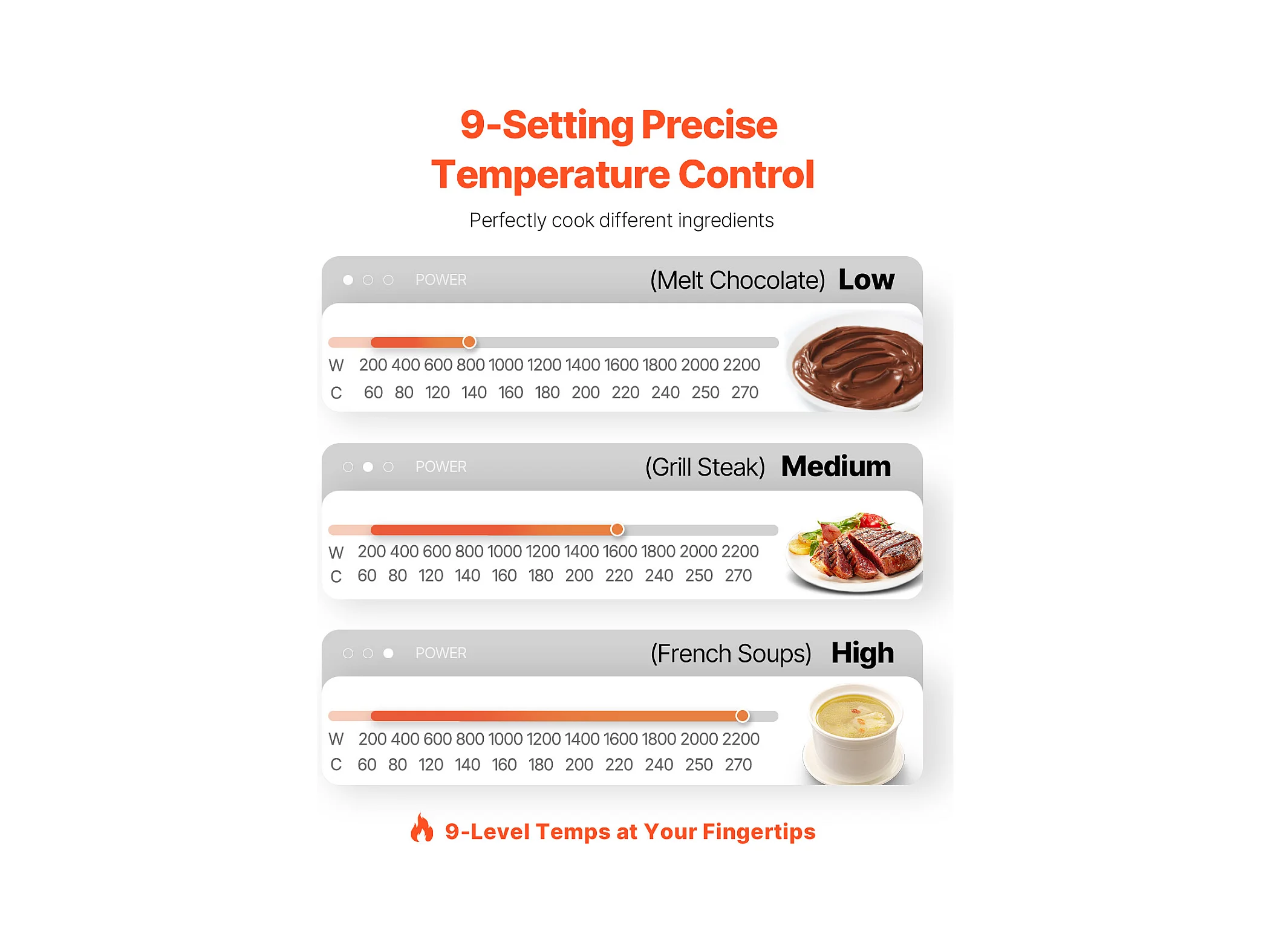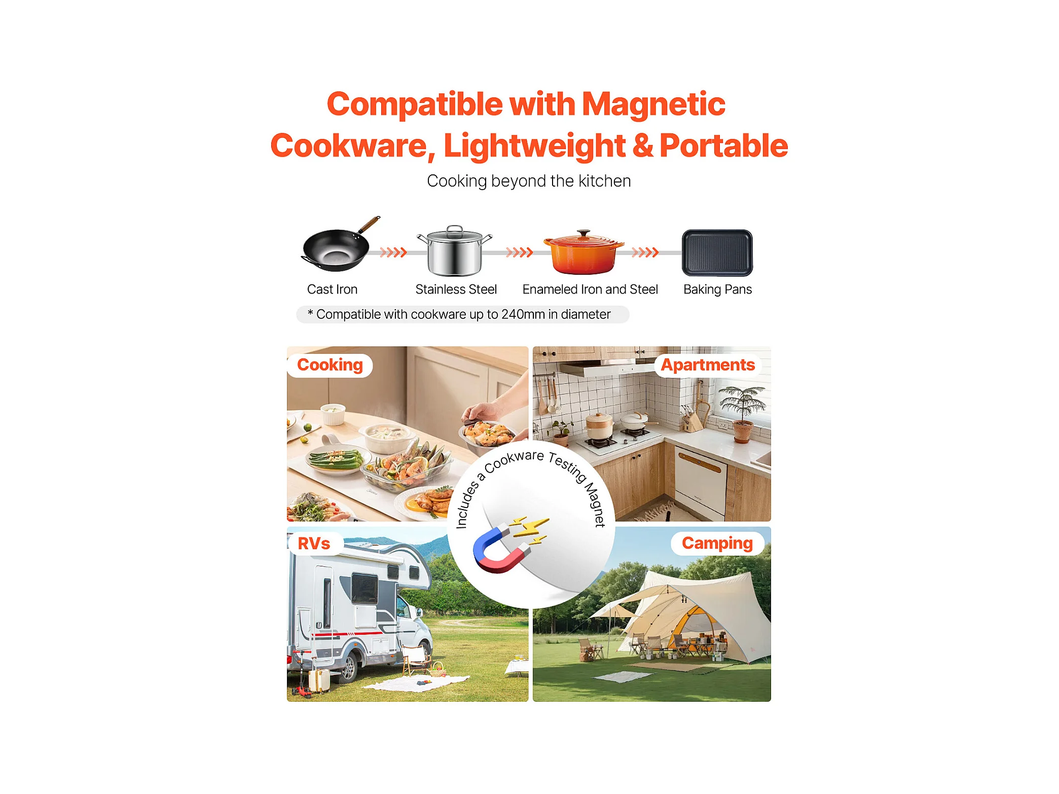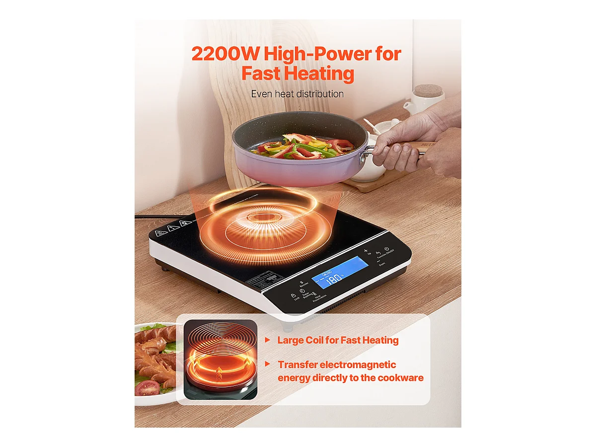 Fornello a Induzione Portatile SucceBuy 2200 W, 9 Regolazioni di Temperatura, Compatto e Versatile, Portatile per la Casa