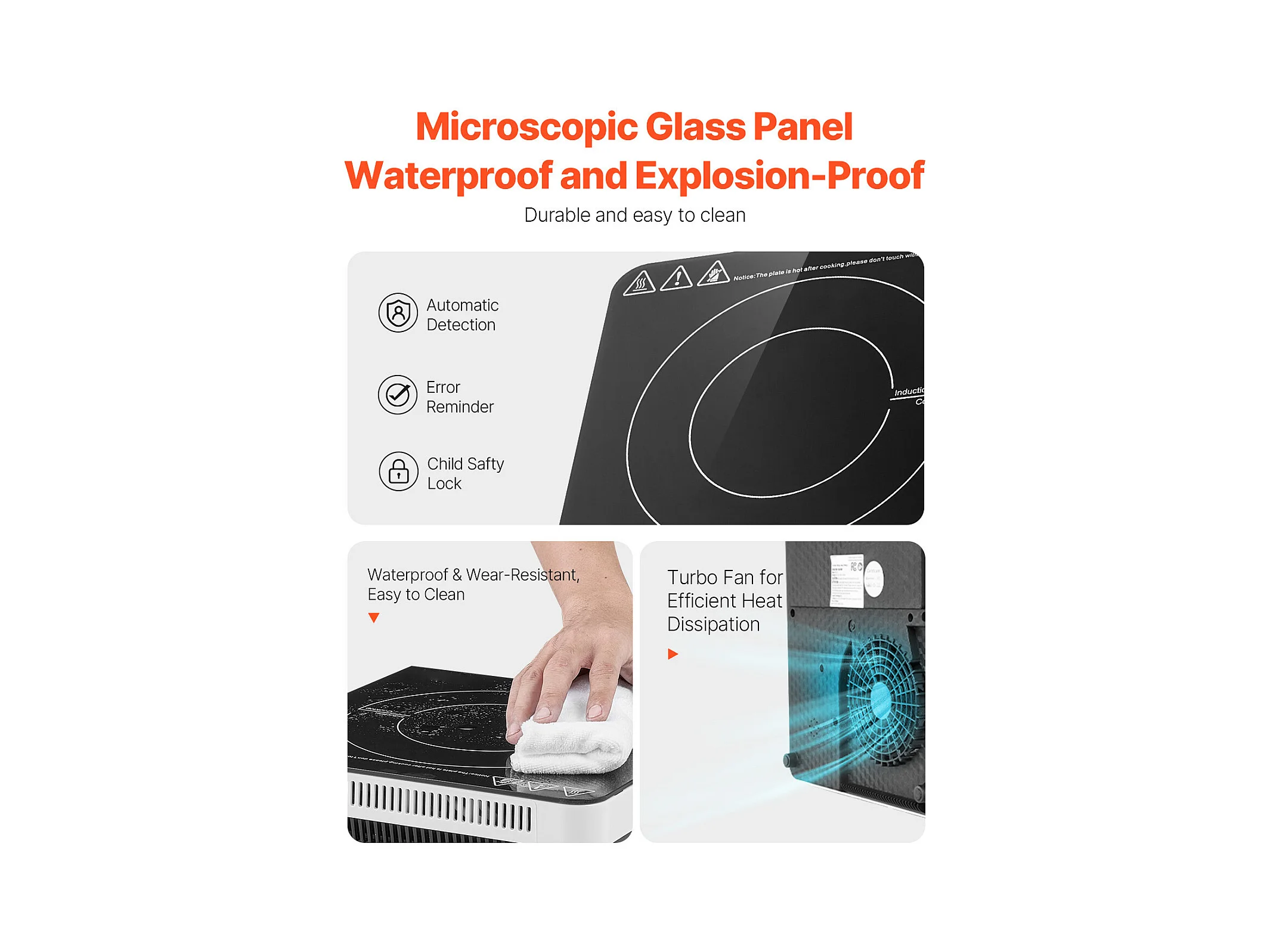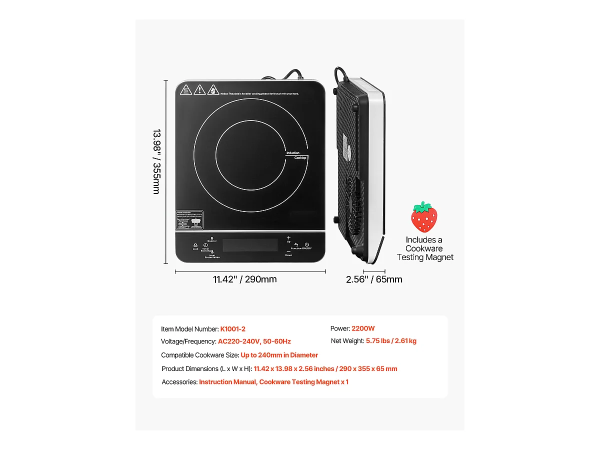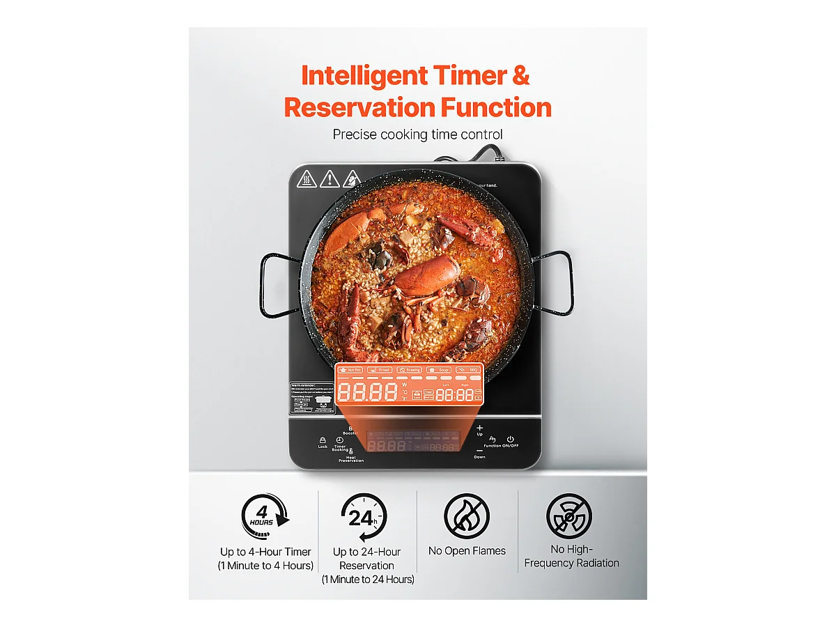 Fornello a Induzione Portatile SucceBuy 2200 W, 9 Regolazioni di Temperatura, Compatto e Versatile, Portatile per la Casa