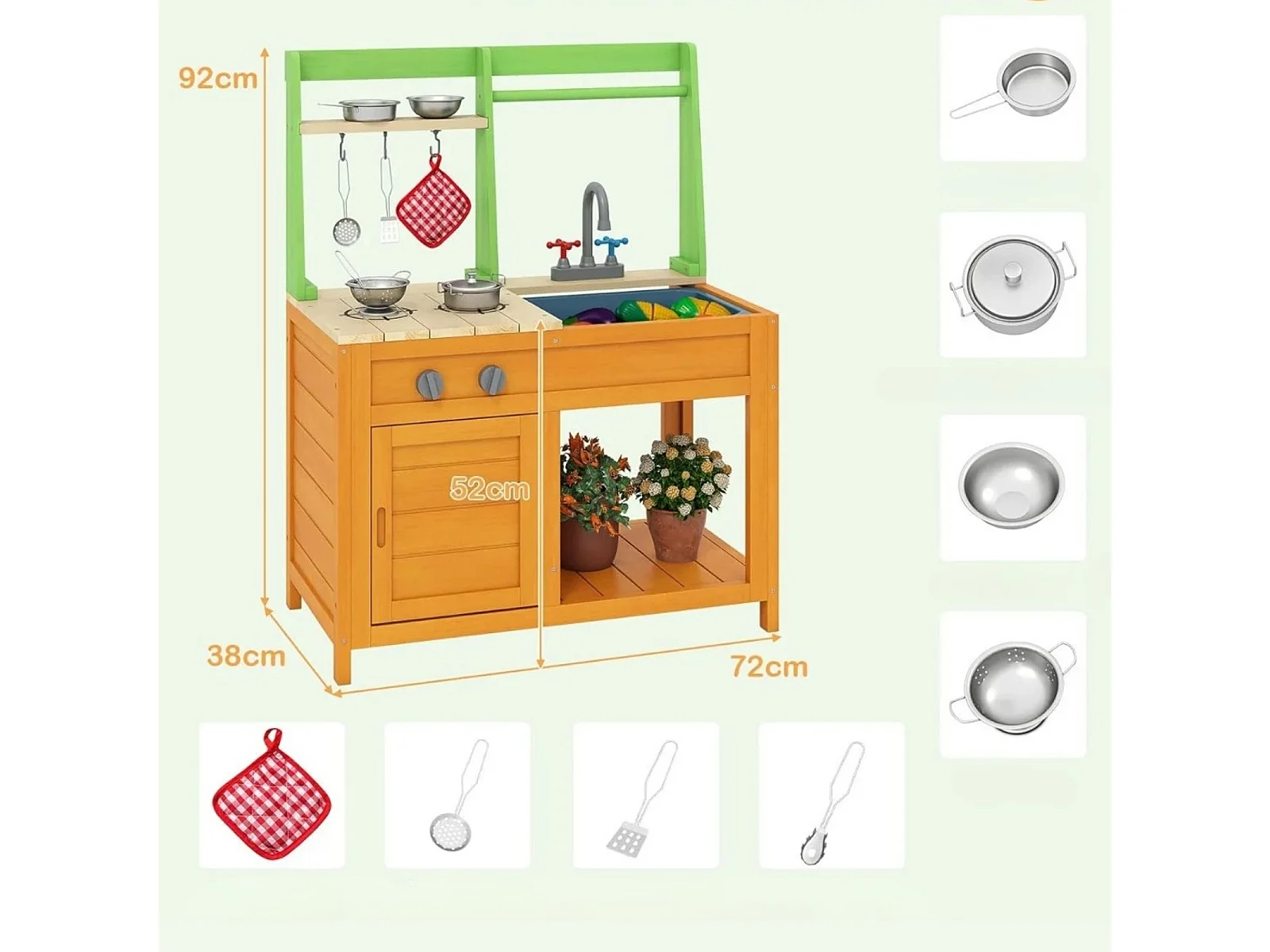 Cucina per Bambini, SucceBuy Cucina in Legno, Set da Gioco all'Aperto per Bambini