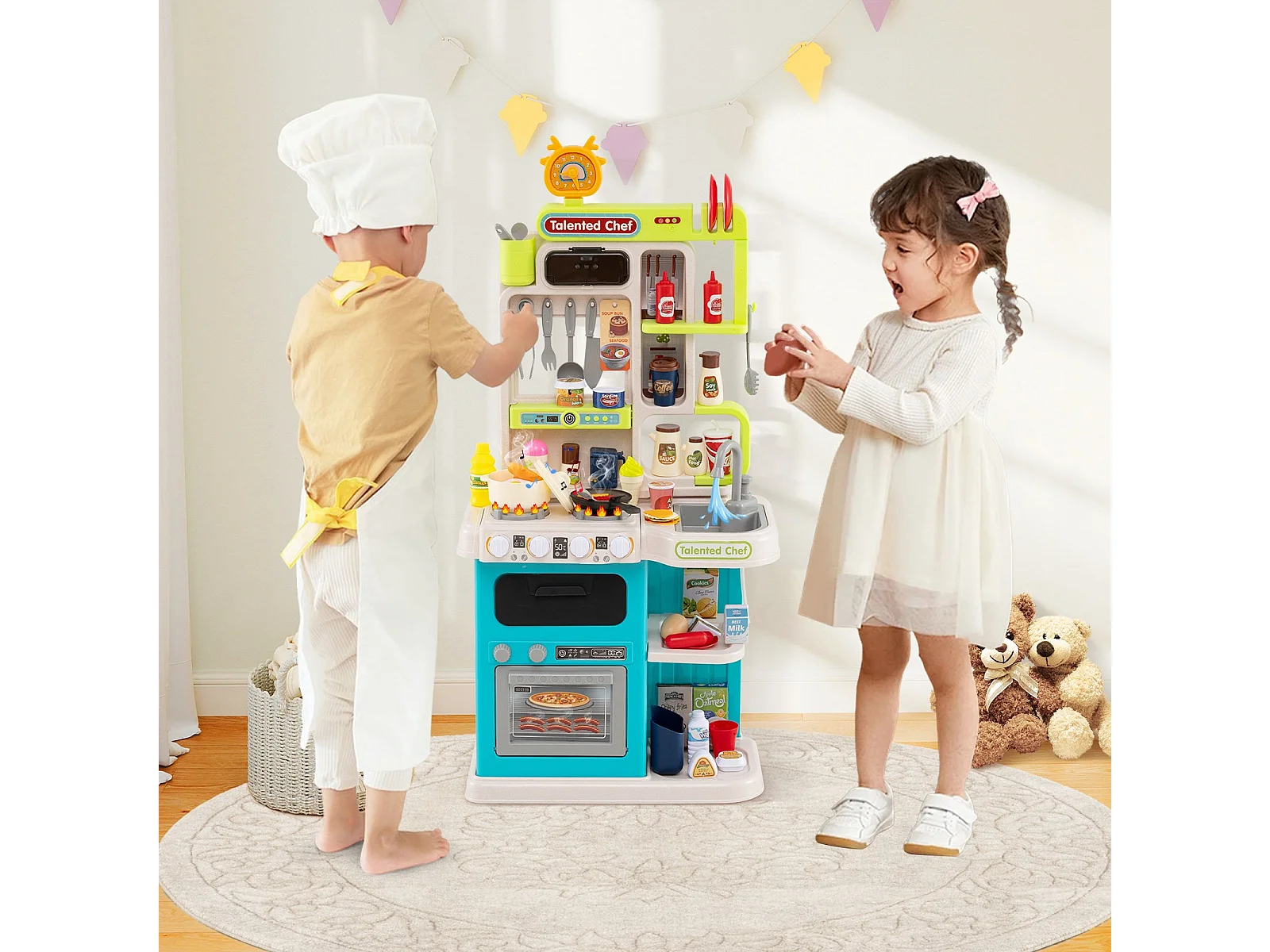 Cucina ad angolo per bambini con suoni e luci Cucina per bambini con fornello, lavello e accessori da 113 pezzi Blu